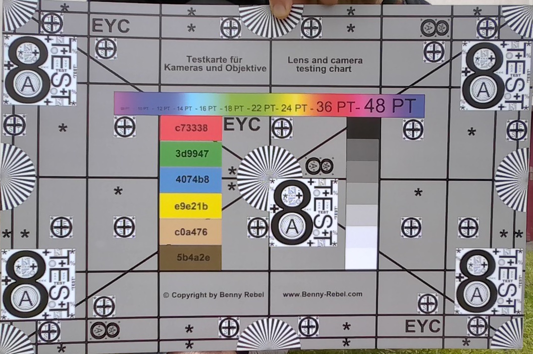 | Colorchecker dE 2000 max. * | 5.56 | 4.41 21% | 17.6 -217% | 2.68 52% | 4.26 23% | 3.58 36% |