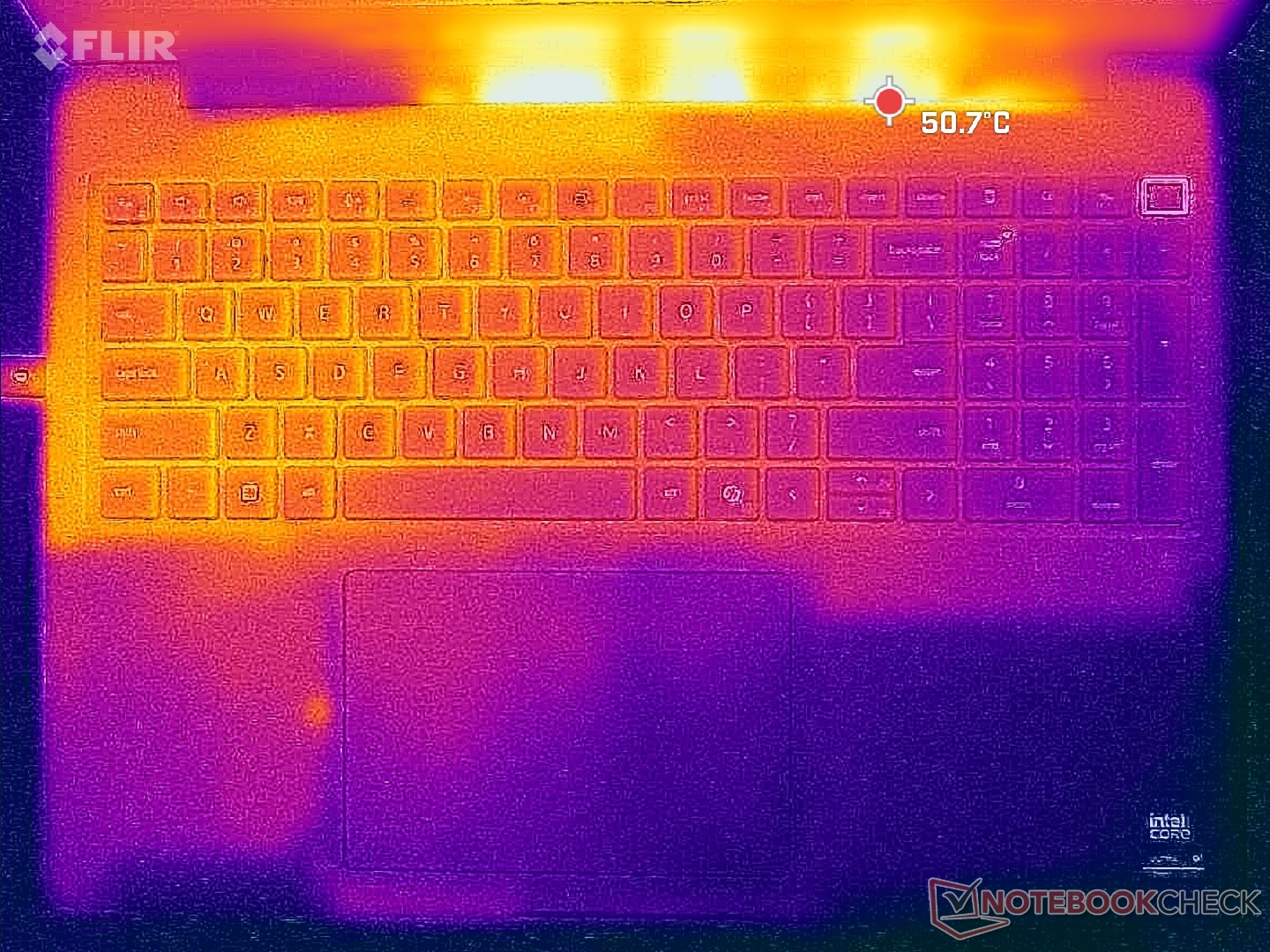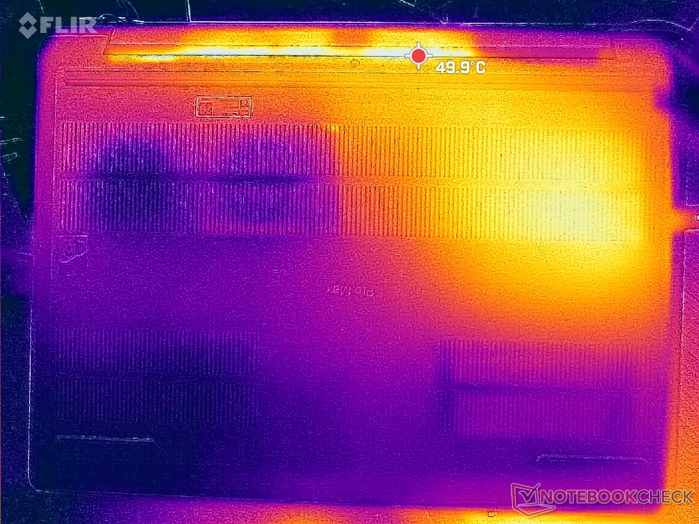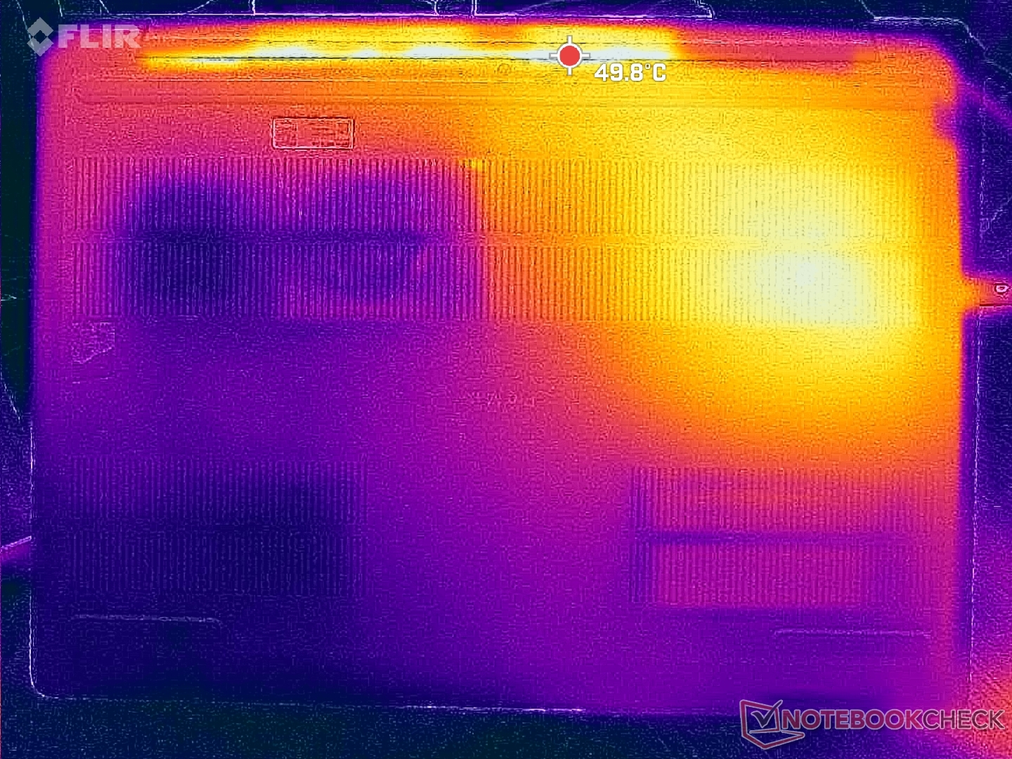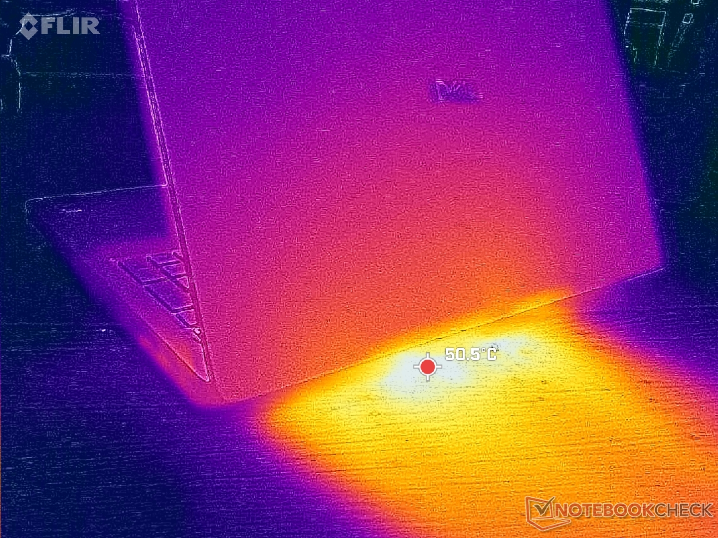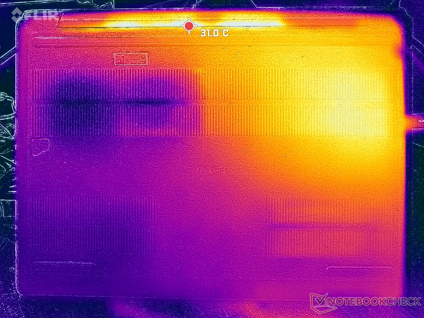 Yüzey sıcaklıkları, muhtemelen uyuşuk fanlar ve yüksek performanslı parçalar nedeniyle ekrandaki yük ne olursa olsun neredeyse her zaman sıcaktır. Asimetrik soğutma çözümü nedeniyle kasanın sol yarısı sağ yarısından belirgin şekilde daha sıcak oluyor.