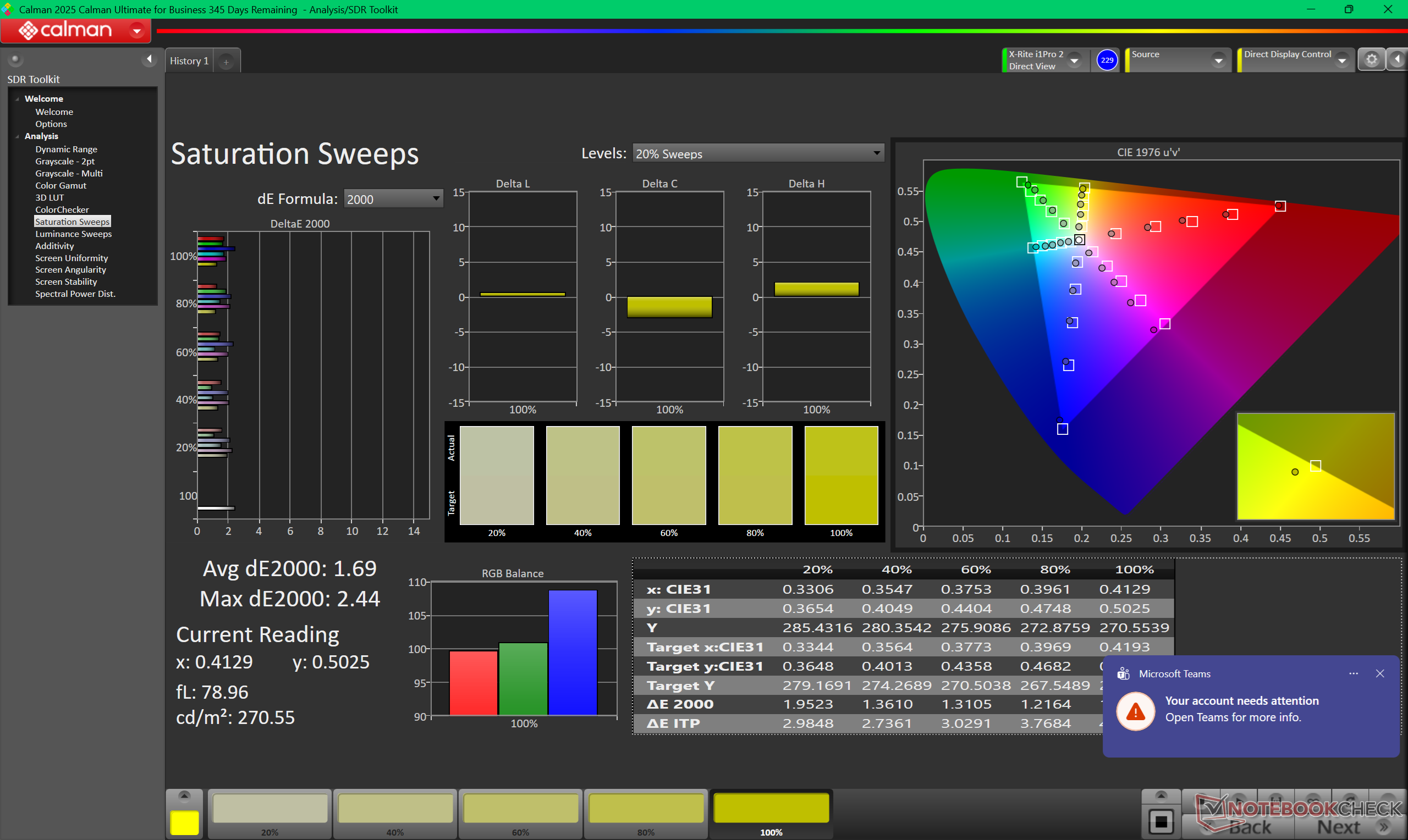 Ekran kutudan düzgün bir şekilde kalibre edilmiş olarak çıksa da, küçük iyileştirmeler için hala yer var. Panelin bir X-Rite renk ölçer ile kalibre edilmesi, ortalama gri tonlama ve renk deltaE değerlerini sırasıyla 2,5 ve 2,09'dan sadece 1,7 ve 1,09'a yükseltirken, renk sıcaklığını da 6500K hedefine yaklaştıracaktır.