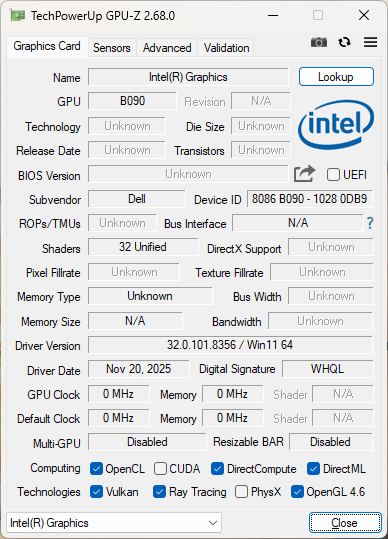 | Dell XPS 14 Core Ultra 7 355 Intel Core Ultra 7 355 ⎘ Intel Graphics 4 Xe3 Panther Lake iGPU ⎘ 16 GB Bellek, 512 GB SSD | Amazon: Liste fiyatı: 1600 USD | 1.5 kg | 15.2 mm | 14.00" 1920x1200 162 PPI IPS | |