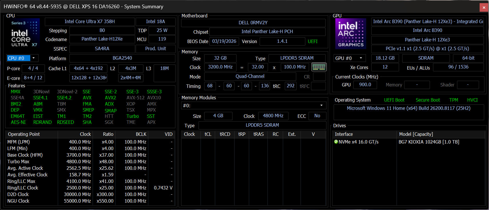 | Dell XPS 16 Core Ultra X7 358H Intel Core Ultra X7 358H ⎘ Intel Arc B390 12 Xe3 Panther Lake iGPU ⎘ 32 GB Bellek | Amazon: 1. $2,229.99 Dell XPS 16 9640 Laptop | In... 2. $2,699.00 Dell XPS 16 9640 16.3" Touch... 3. $1,459.00 Dell XPS 13 9340 AI Powered ... Liste fiyatı: 2350 USD | 1.7 kg | 14.62 mm | 16.00" 3200x2000 236 PPI OLED | |