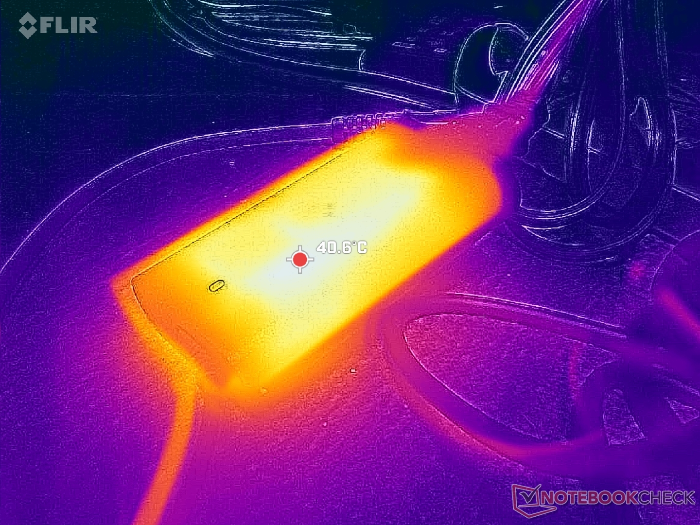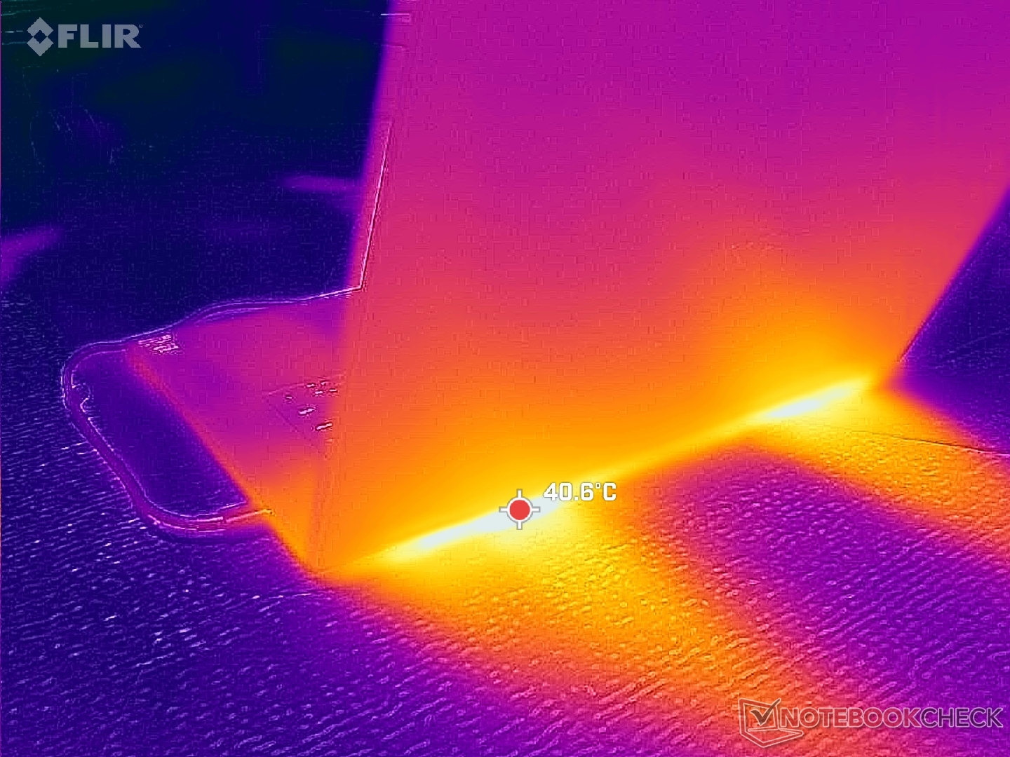 Yüzey sıcaklıkları, daha hızlı RTX 4070 grafiklere sahip daha eski ancak daha kalın XPS 16 9640 ile karşılaştırıldığında ortalama olarak daha soğuk. Sıcak noktalar yine de klavye merkezinin yakınında benzer 40 C aralığında zirveye ulaşıyor.