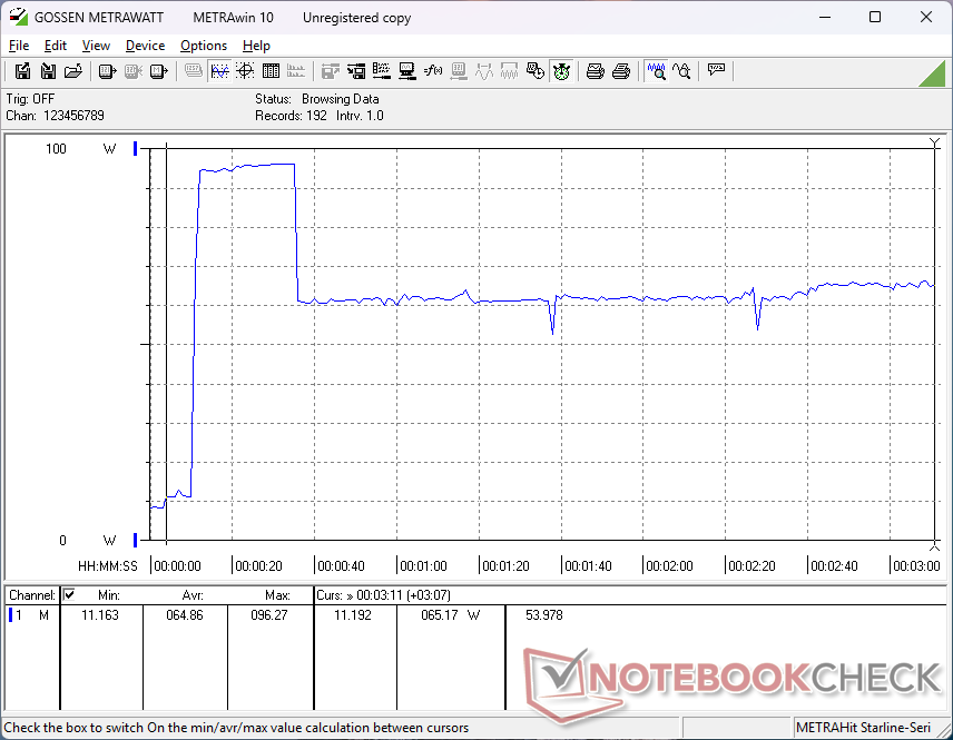 CPU, Prime95 stresini çalıştırırken 2,9 GHz, 69 W ve 100 C'ye yükselir ve birkaç saniye sonra sınırlı Turbo Boost sürdürülebilirliğini temsil etmek için 2,2 GHz, 40 W ve 78 C'ye düşer. Kısma, yukarıdaki CineBench R15 xT döngü sonuçlarımızı ve aşağıdaki güç tüketimi davranışımızı tamamlıyor.