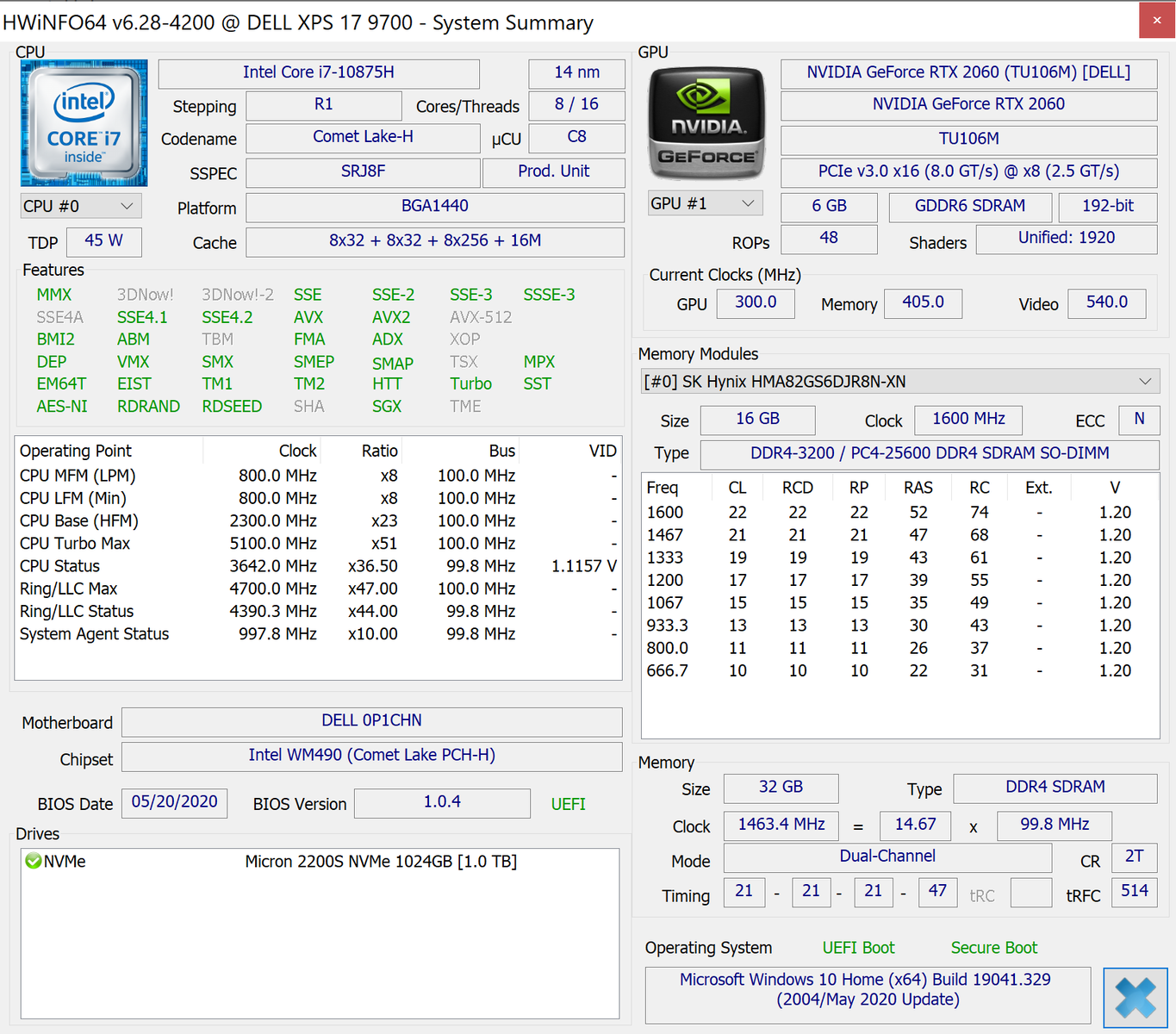 | 87.9 % v7 (old) | 07/2020 | Dell XPS 17 9700 Core i7 RTX 2060 Max-Q i7-10875H, GeForce RTX 2060 Max-Q | 2.5 kg | 19.5 mm | 17.00" | 3840x2400 | |