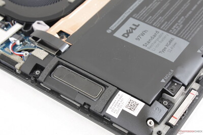 Runtimes are almost identical to what we recorded on the XPS 15 despite the larger form factor and faster GPU. We got around 9.5 hours of real-world WLAN use which is very long for a 17-inch laptop with a Core H series processor and GeForce RTX GPU. Our WLAN test involves looping web pages every 40 seconds on the Balanced power profile with the integrated GPU enabled and at a display brightness of 150 nits.