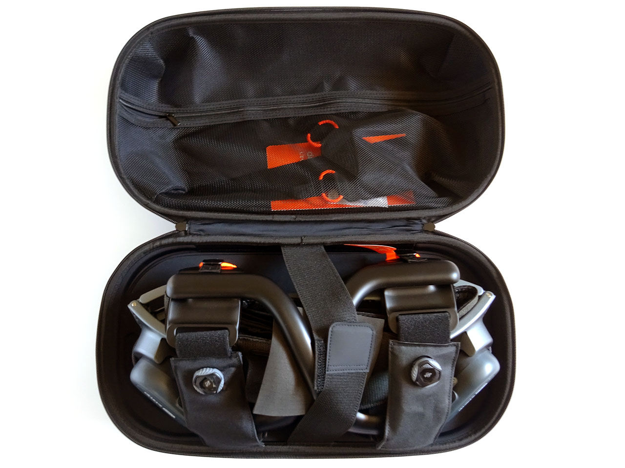 Dış iskelet, kullanım kılavuzu, şarj adaptörü, şarj cihazı, USB kablosu, güç kablosu, iki pil ve iki kayış setiyle birlikte sert bir çanta içinde geldi.