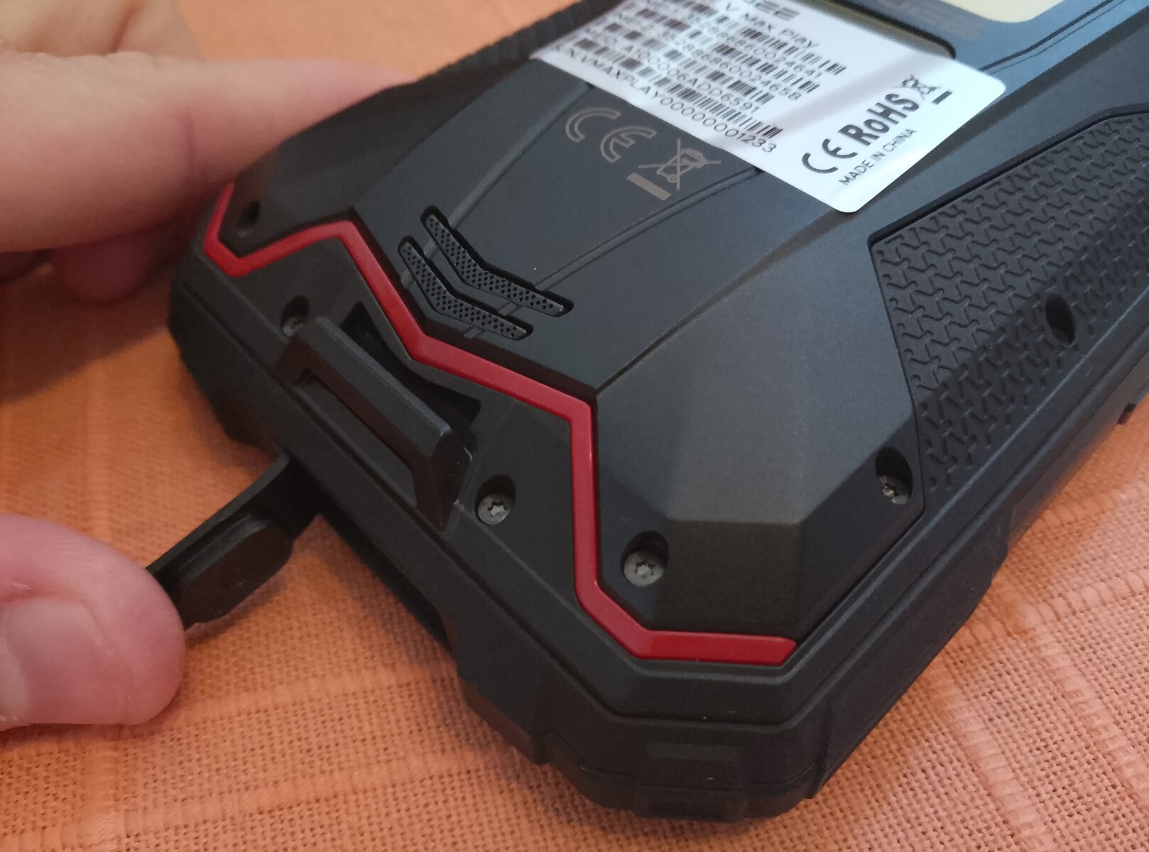 Soldaki SIM kart tepsisi 2 nano-SIM kart ve bir micro-SD kart için oymalara sahiptir ve çıkarılması ve geri takılması kolaydır. V Max Play toplamda 5 düğmeye sahiptir; bunlar belirli bir sıraya göre ses açma/kısma düğmeleri, güç, projektör ve özel bir eylem tuşudur.