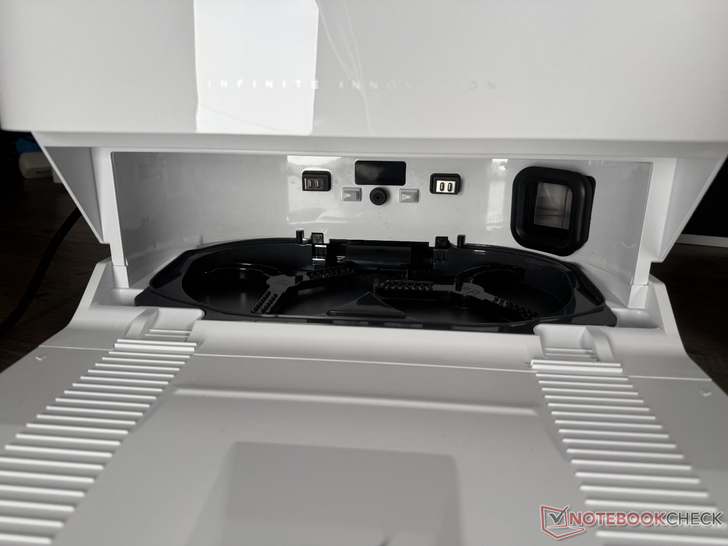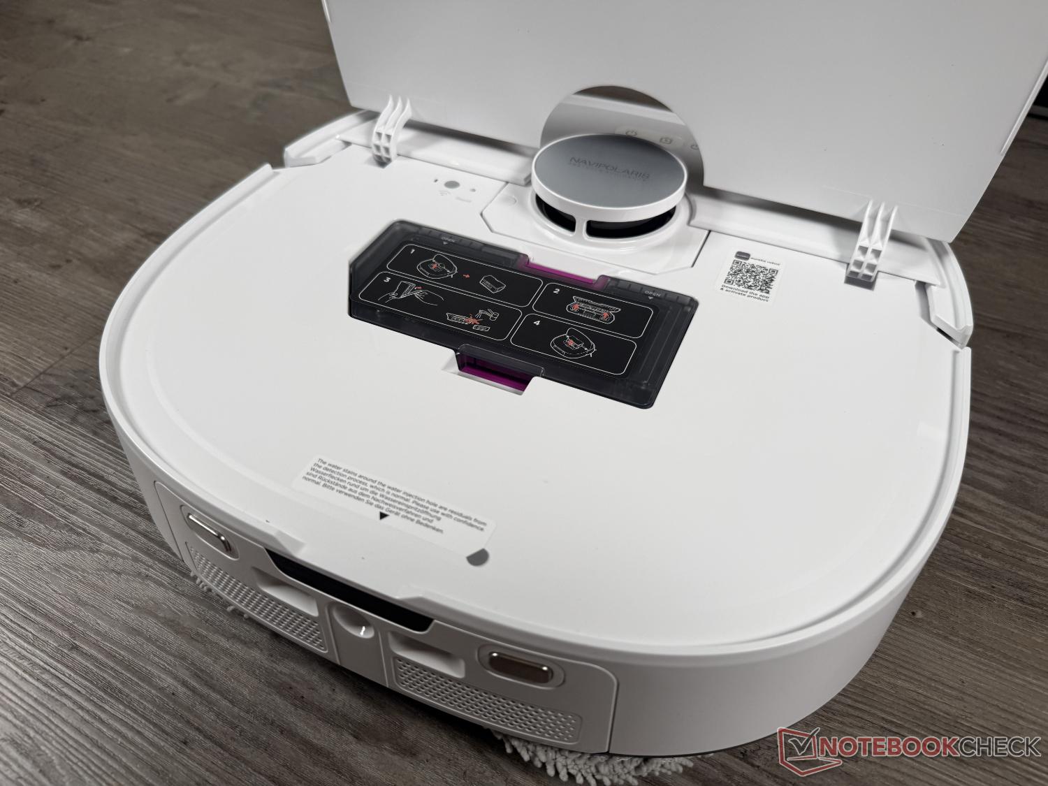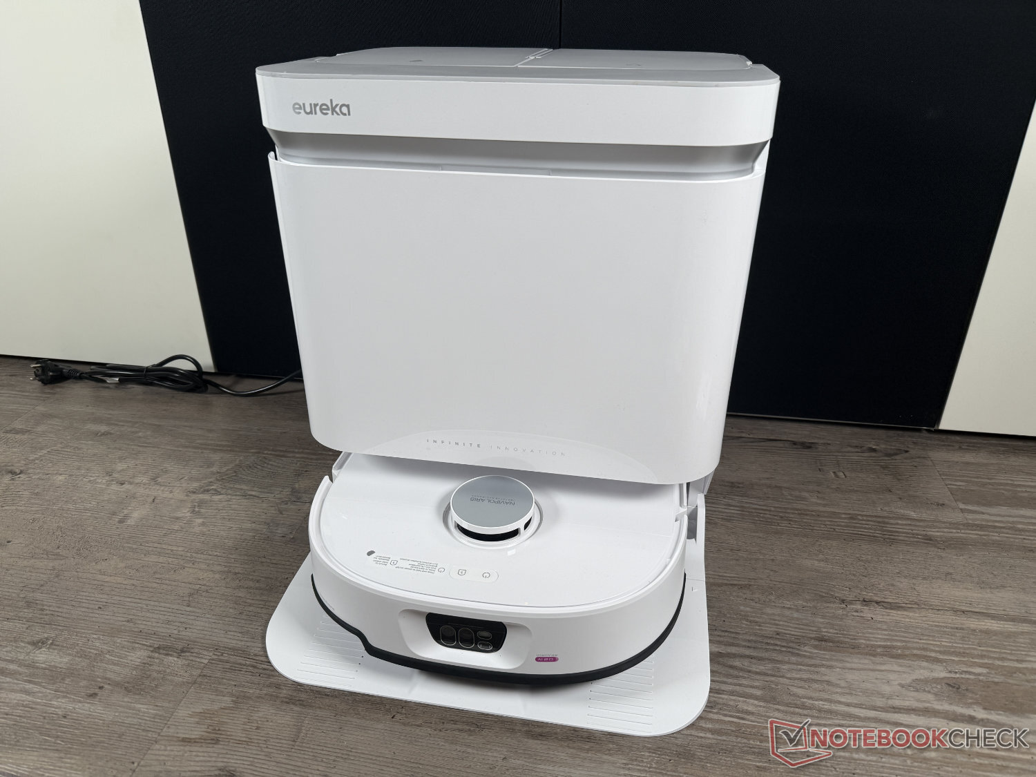 Eureka J15 Max Ultra, kendi kendini temizleme istasyonu ile birlikte tedarik edilir. Buna ek olarak - otomatik deterjan dağıtımının olmaması dışında - paspaslar her zamanki gibi 80°C'ye ısıtılmış suyla temizlenir ve ardından 55°C'ye ısıtılmış havayla kurutulur. Görsel olarak, taban oldukça basit ve çekici bir tasarıma sahip. Bizim gözümüzde görünümü biraz bozan şey, beyaz versiyonun siyah bir güç kablosuna sahip olması.