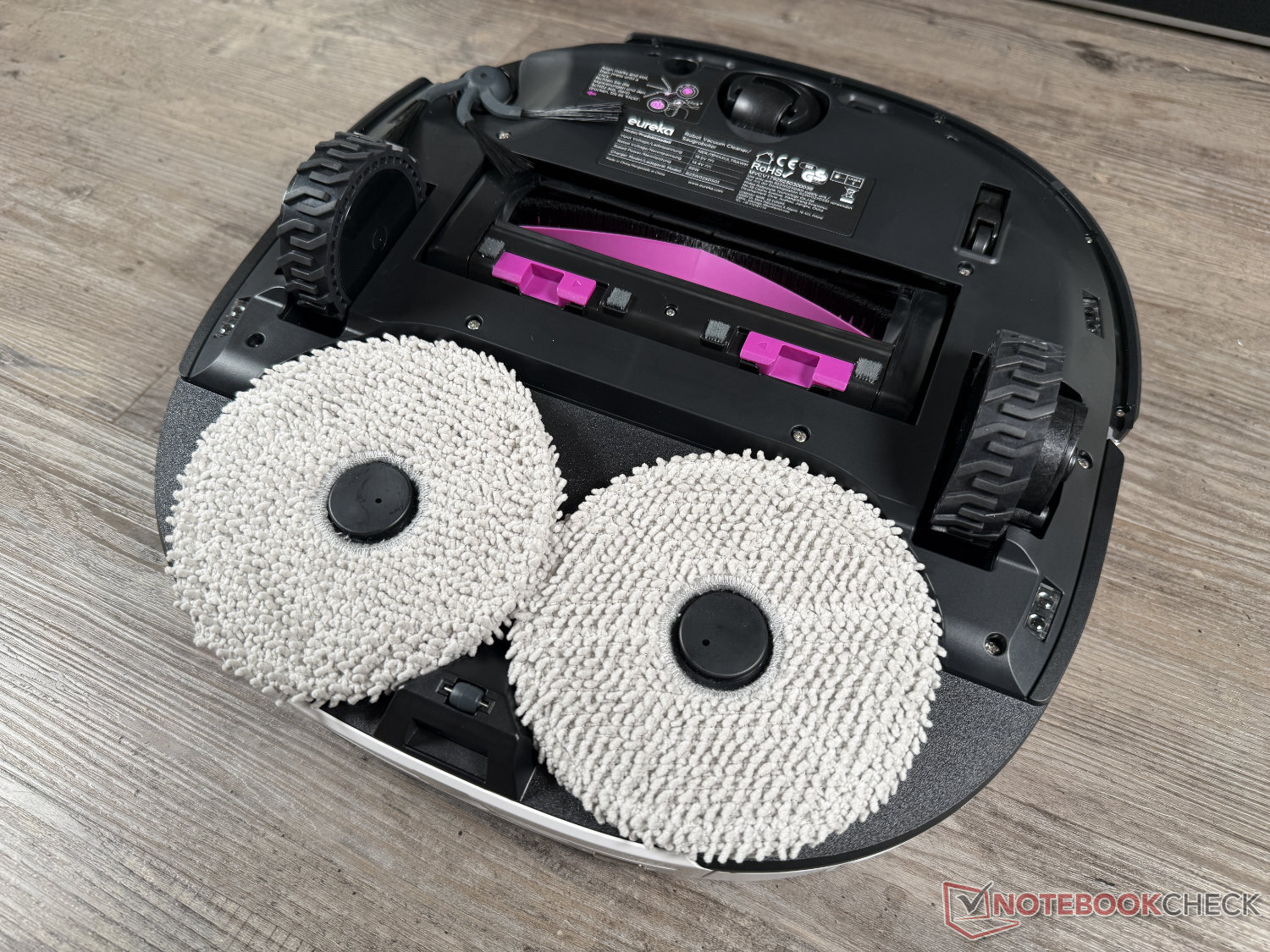 Eureka, paspaslama için amiral gemisi modelindeki yerleşik iki döner paspasa güveniyor. Bu paspaslama teknolojisi, artık çok daha ucuz ve yeni orta sınıf vakum robotlarında bile kullanılan paspas silindiri tarafından gölgede bırakılmıştır Ecovacs Deebot T90 Pro Omni ya da Mova S70 Silindir. Günlük kirler mümkün olduğunca toplanmıştır. Ancak, bu paspaslama teknolojisine sahip diğer birçok model gibi, robot da kurumuş lekelerde - tekrarlanan temizlikten sonra bile - sınırlarına ulaşıyor. Birçok paspas silindiri modeli burada daha üstündür. Performans günlük kirler için yeterlidir.