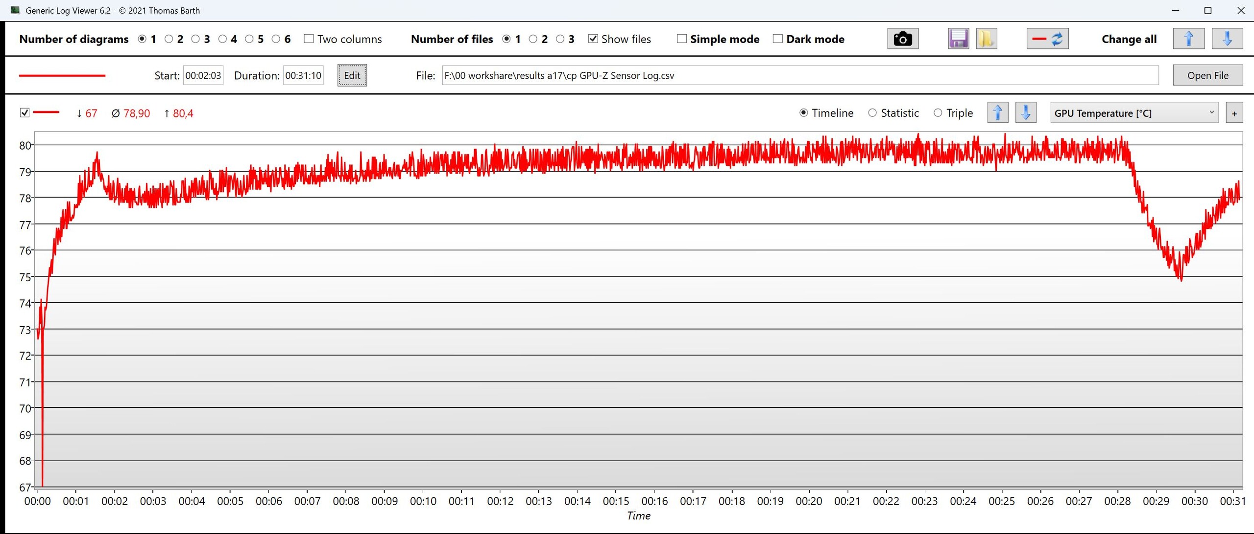 | CPU Saati (GHz) | GPU Saati (MHz) | Ortalama CPU Sıcaklığı (°C) | Ortalama GPU Sıcaklığı (°C) | |