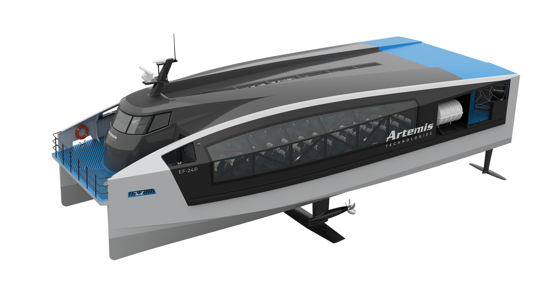 Artemis kısa süre önce duyurdu üç adet EF-24 hidrofoil elektrikli feribotun Beflast'a başarıyla teslim edildiğini duyurdu. Artemis EF-24 Yolcu, yüksek hızlı bir feribot olarak kabul edilir ve esas olarak Doğu Asya'da kullanılan Boeing 929'a (jetfoil) benzer, ancak önemli ölçüde daha büyük olan su üzerinde hareket etmek için hidrofoilleri kullanır.