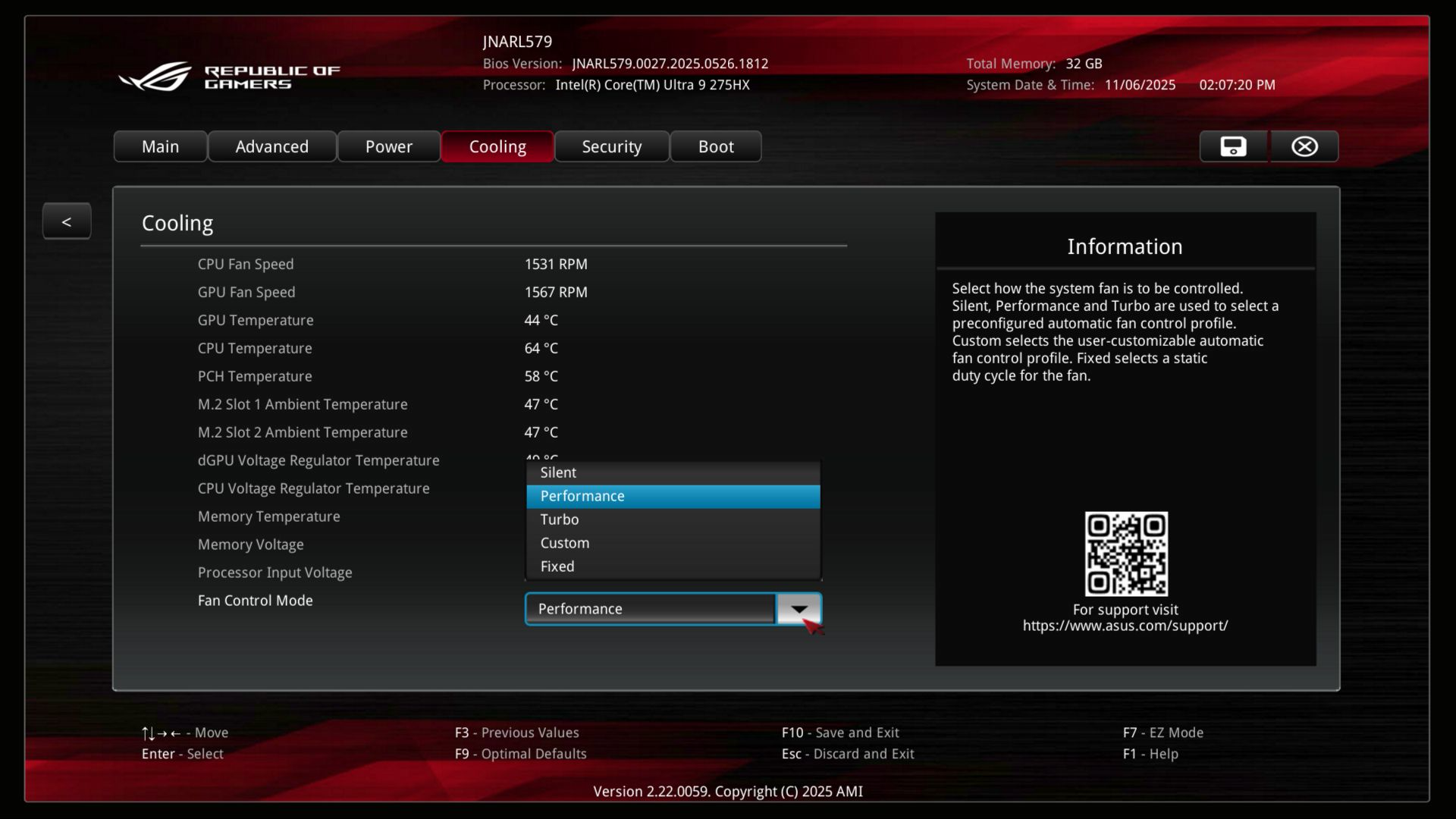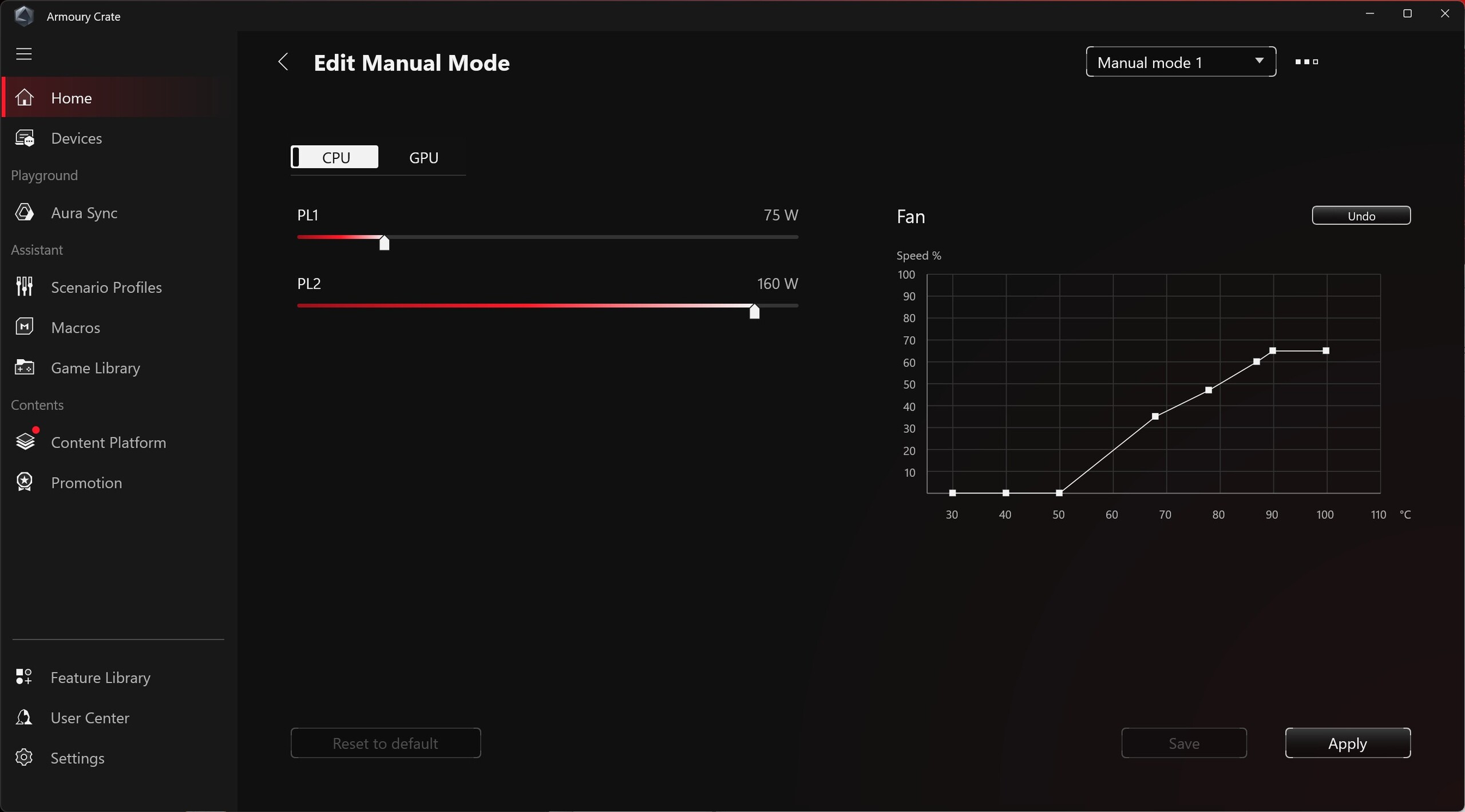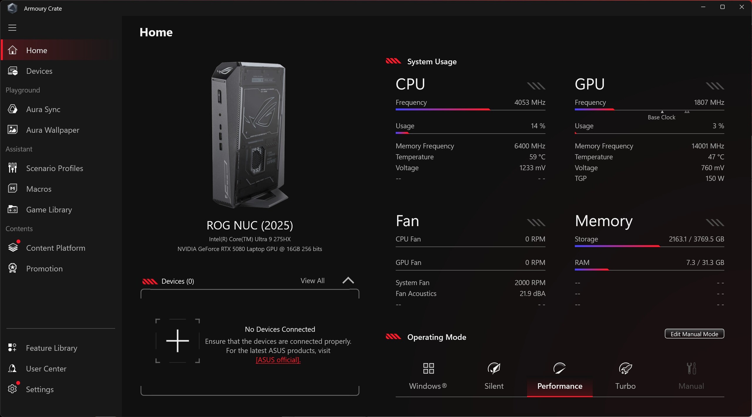 Bu cihazla yapılan tüm performans testleri için "Performans" enerji profilini kullandık. Kapsamlı bir şekilde tasarlanmış UEFI, cihazı özelleştirmek için çok fazla alan sunar. Çeşitli performans profilleri ve fan profilleri seçilebilir. Performans, iyi bilinen Armoury Crate aracı kullanılarak Windows işletim sisteminde de kolayca ayarlanabilir.