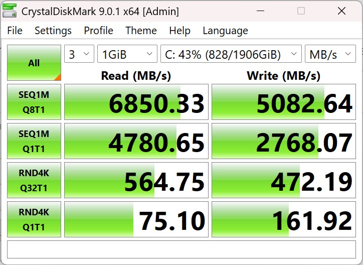 | Connectivity - USB 3.x / USB4 / TB - AS SSD Seq Read Test (1GB) | |