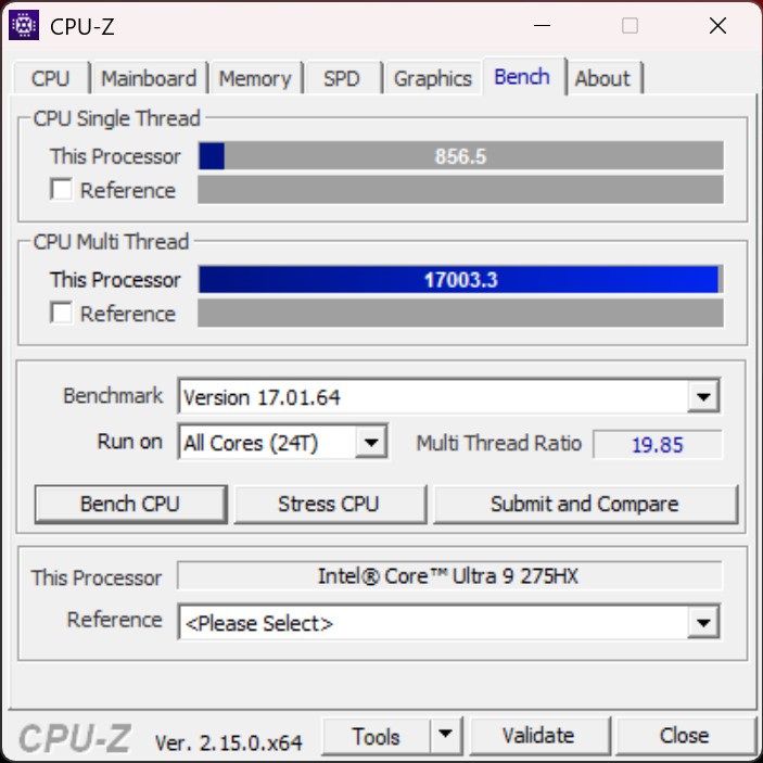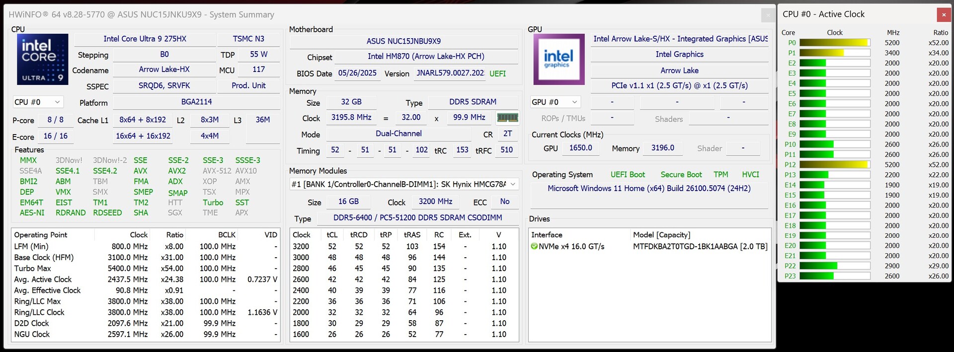Intel Core Ultra 9 275HX, Intel'in şu anda mobil sektörde sunduğu en iyi işlemcilerden biridir. Bu, Asus ROG NUC 15'in mükemmel performans gösterdiği CPU karşılaştırmalarımızda da etkileyici bir şekilde gösterilmiştir. Hem tek çekirdek performansı hem de çok çekirdek performansı mükemmel ve herhangi bir zayıf nokta göstermiyor. Yepyeni ve aynı zamanda son derece güçlü AMD Ryzen AI Max+ 395 bile (in Bosgame M5) genellikle yenilebilir.