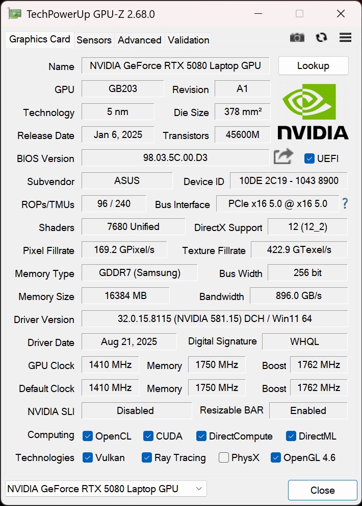 Asus ROG NUC 15'in en üst modeli aşağıdaki özellikleri bir araya getiriyor Intel Core Ultra 9 275HX nvidia GeForce RTX 5080 dizüstü bilgisayar GPU'su ile QHD oyunlarda bile güçlü performans sunar.