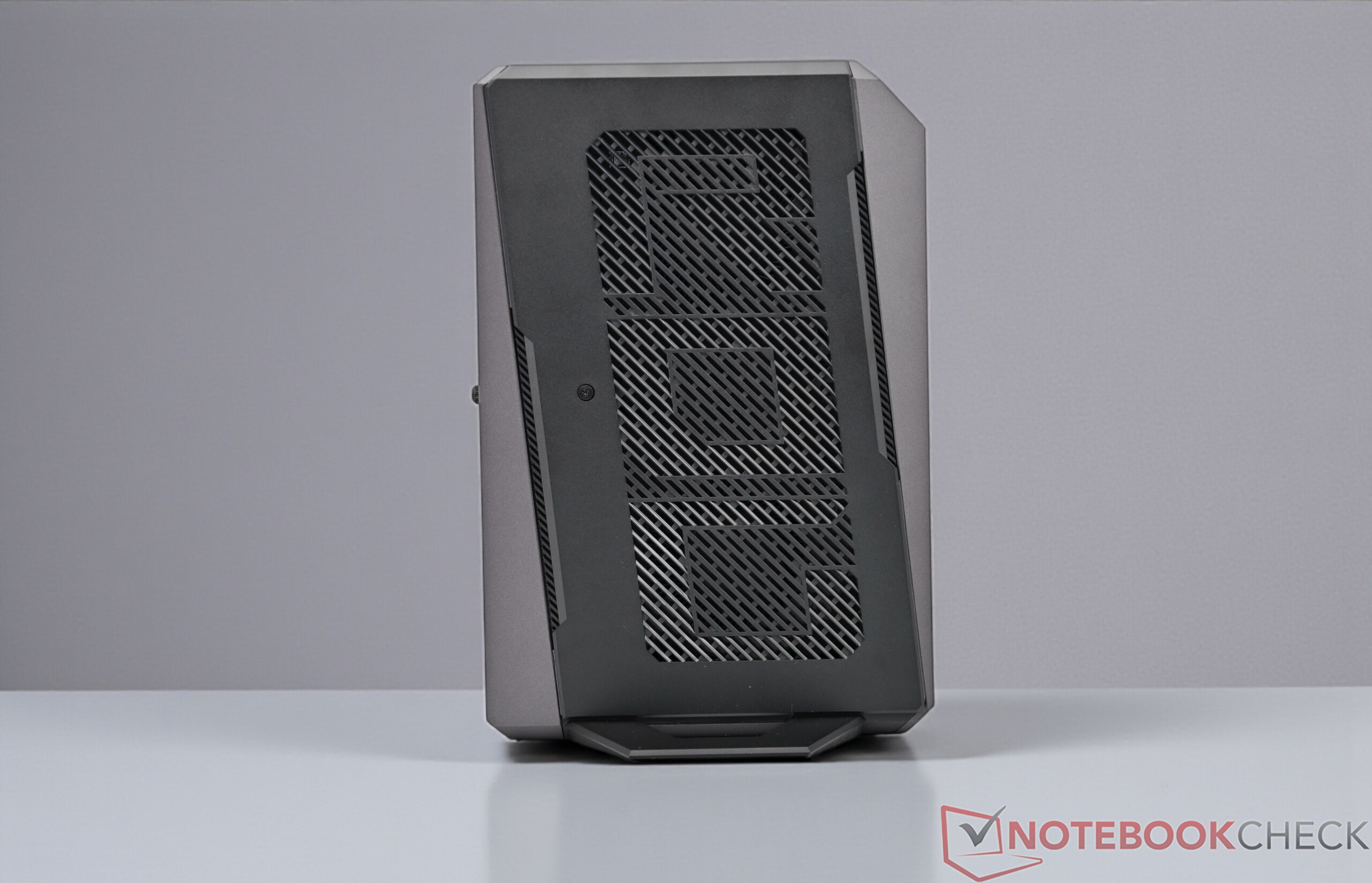 Asus ROG NUC 15, kompakt bir tasarımı güçlü soğutma ve sağlam işçilikle birleştiriyor. Kasa biraz daha büyük olmasına rağmen, ROG NUC 15 yerden tasarruf sağlar ve esnektir. Dikey olarak kurulabilir, bu da hava sirkülasyonunu iyileştirir. Kasanın dışı plastik, içi sağlam metalden oluşurken, Aura Sync ile aydınlatılmış ROG logosu vurgu yapıyor. Yaklaşık 3,0 kg ağırlığındaki mini PC, daha ağır modellerden biri olmasına rağmen performans, tasarım ve pratiklik arasında başarılı bir denge sunuyor.