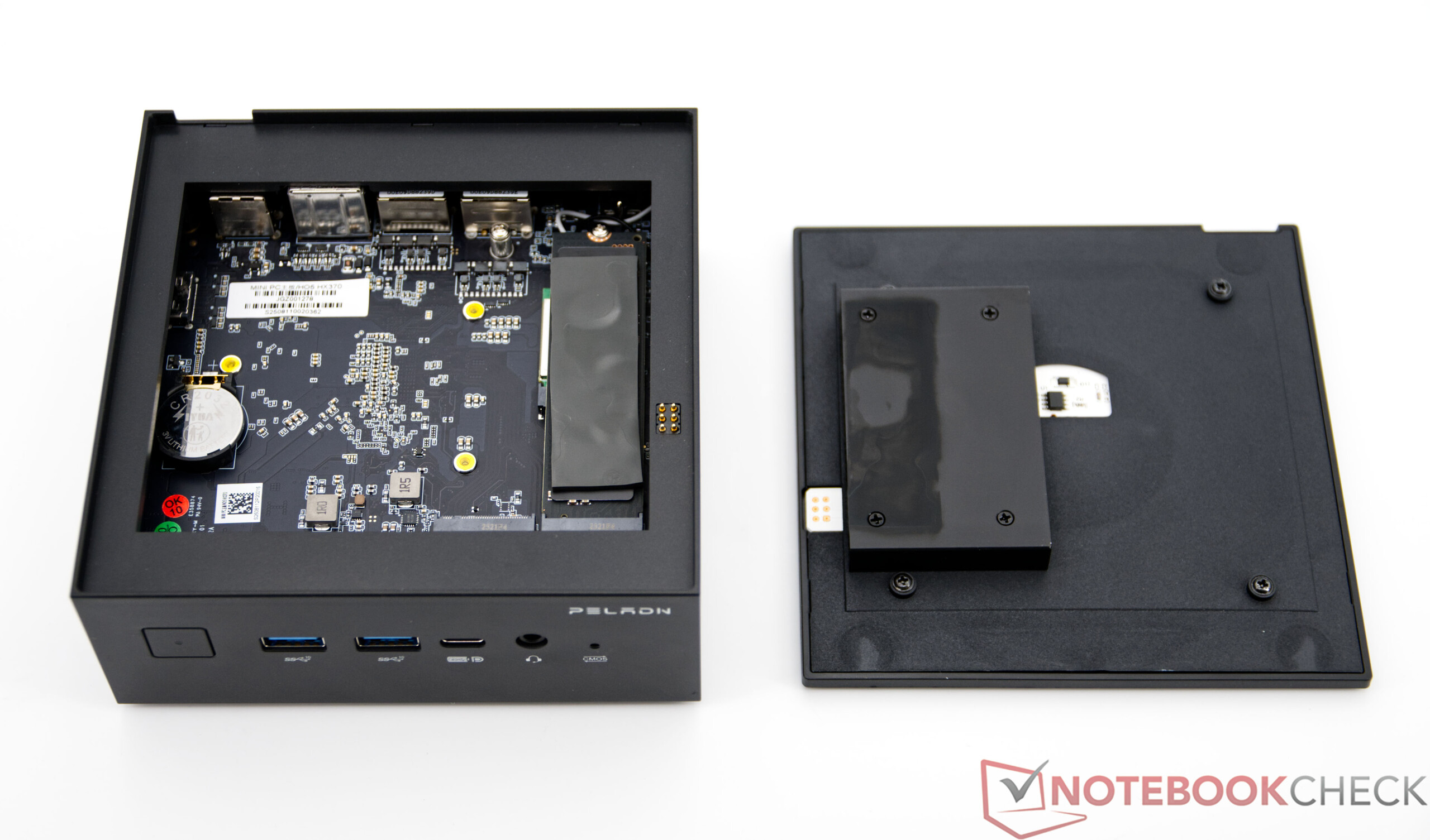 Peladn HO5 yalnızca önceden yüklenmiş bir SSD ve lehimlenmiş RAM ile mevcuttur. Bununla birlikte, daha fazla yığın depolama için ek bir yuva mevcuttur. Üst kısım alet kullanmadan çıkarılabilir ve bileşenlere hızlı erişim sağlar. CPU fanına erişmek için alt tarafın çıkarılması gerekir.