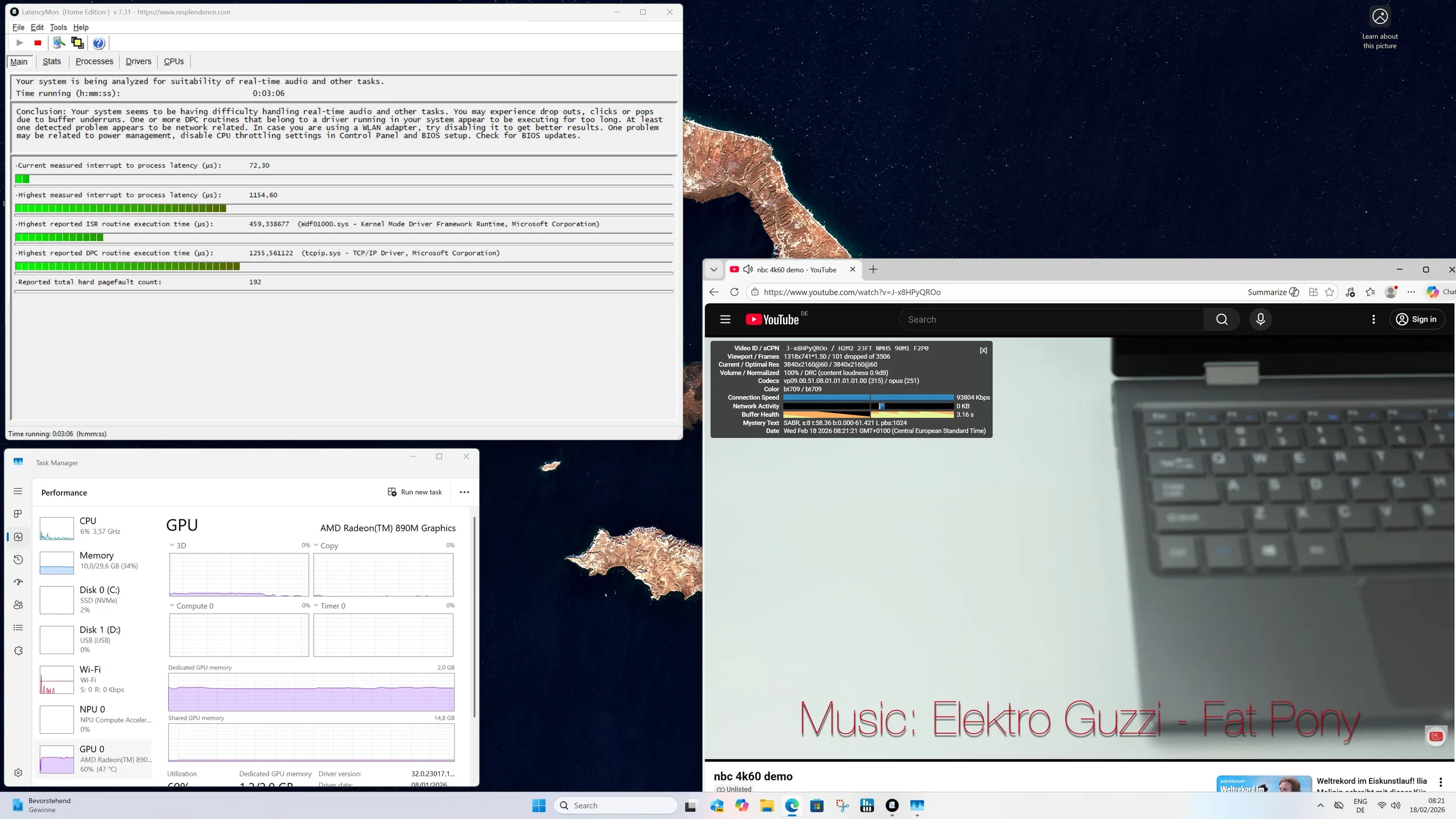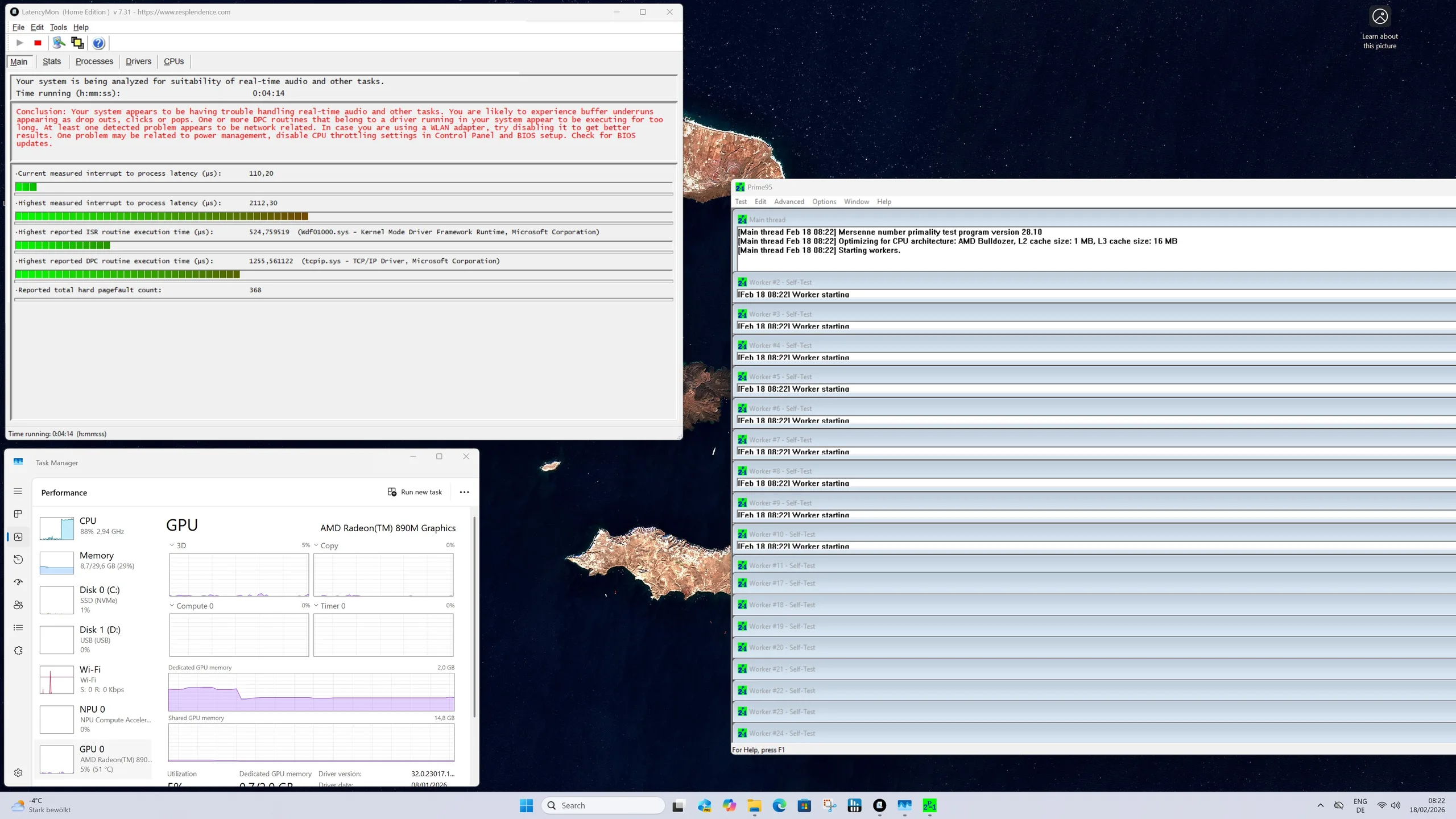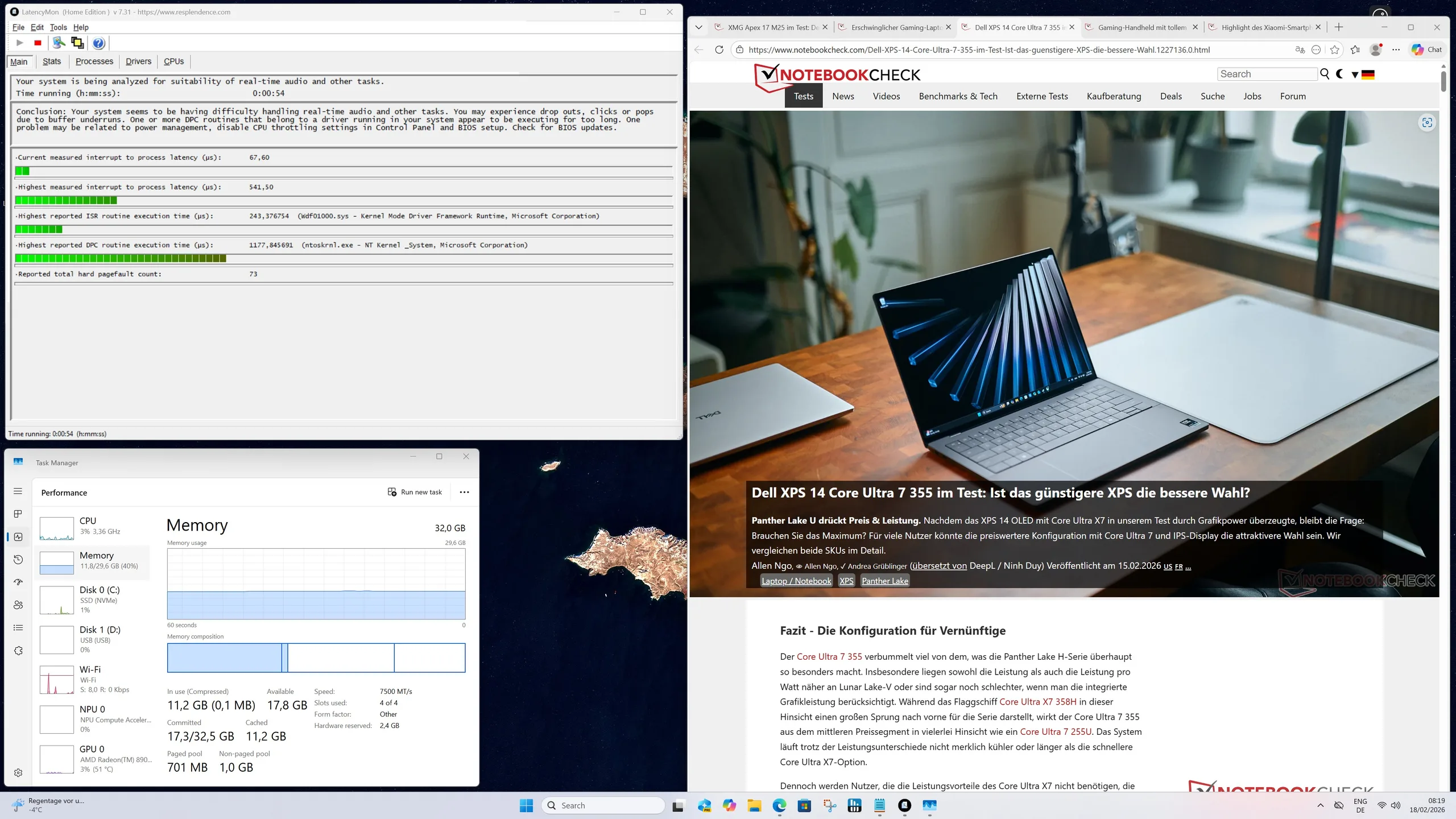 | DPC Latencies / LatencyMon - interrupt to process latency (max), Web, Youtube, Prime95 | |