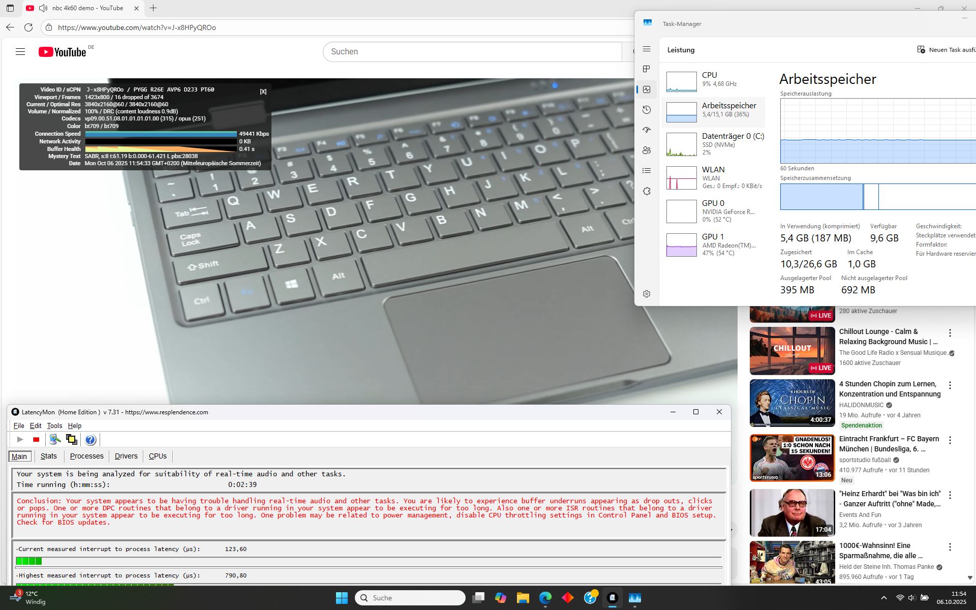 Kablosuz bağlantı da bir adım geriye gitti. Wi-Fi 6E yerine HP artık vasat aktarım hızları sunan bir Realtek Wi-Fi 6 modülü kullanıyor. Bu XMG Çekirdek 15 ve Lenovo LOQ 15 yine de benzer sonuçlar gösteriyor.