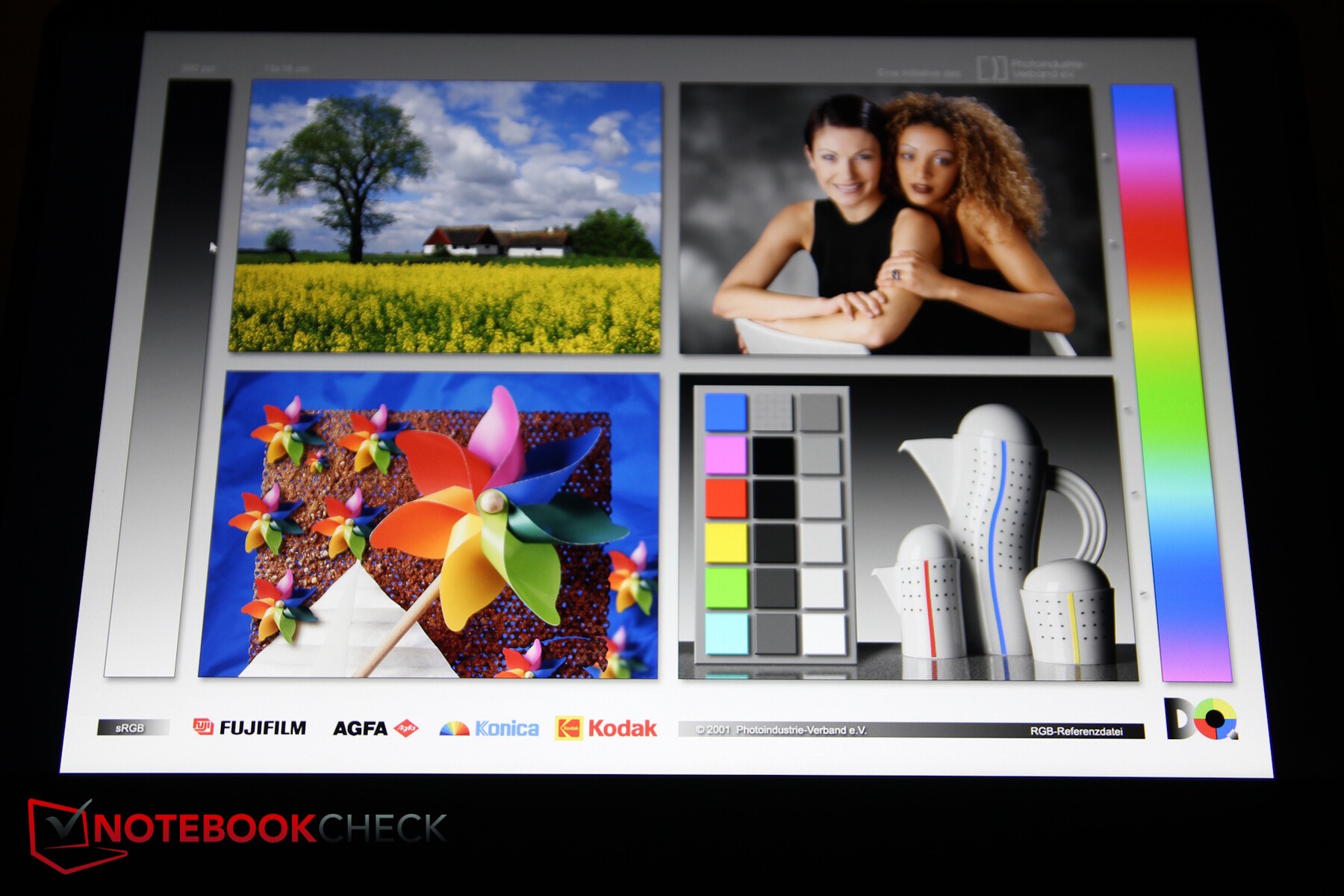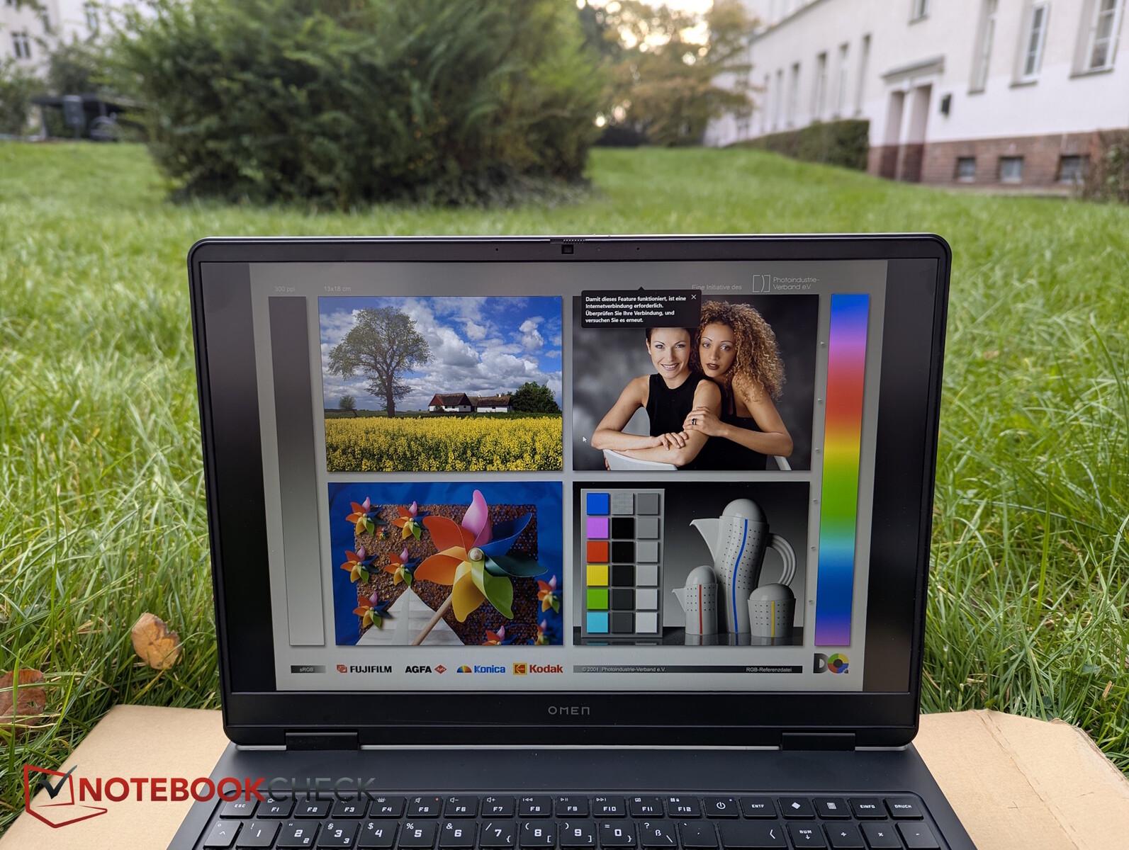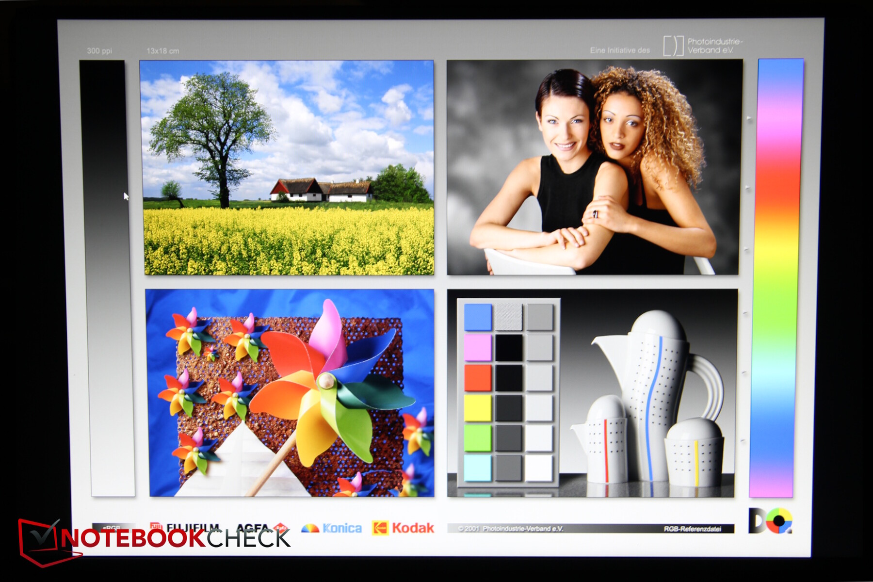 Ölçümlerimiz 300 nit parlaklığı ve sağlam homojenliği doğruladı, ancak sağ altta küçük bir ışık noktası fark ettik. Kontrast iyi, ancak renk kapsamı zayıf - diğer ekonomik dizüstü bilgisayarların bile artık aşmayı başardığı %60 sRGB'nin altında.