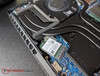 Harici bir ekranın takılması, özel GPU'yu etkinleştirir ve bu da boşta güç çekimini artırır. Yük altında güç tüketimi ortalamadan biraz daha yüksektir. Verimlilik güçlü yönü değildir, ancak 230W güç adaptörü iyi boyutlandırılmıştır.