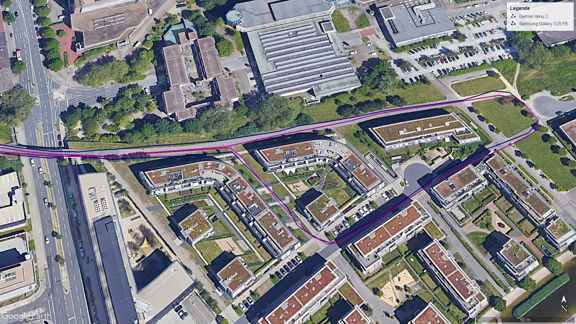 10 kilometrelik bir bisiklet sürüşünde, akıllı telefon hızlı bir şekilde iyi bir sinyal aldı, ancak rotamızı her zaman Garmin Venu 2 fitness akıllı saati kadar doğru kaydetmedi. GPS'in ara sıra birkaç metre sapmasına aldırış etmiyorsanız, bu akıllı telefon iyi bir navigasyon cihazı.