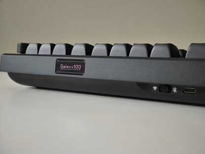 Kasa özelliklerine gelince, Galaxy 100, yalnızca USB-C bağlantı noktası ve kartın arkasının ortasında fiziksel bir bağlantı seçim anahtarı ile yine oldukça minimal tutuyor. USB-C bağlantı noktası ve anahtarın her ikisi de arka dudağın altına gizlenmiştir, yani USB-C bağlantı noktası klavyenin üst kenarından hafifçe girintilidir ve yine temiz estetiğe katkıda bulunur. Muhtemelen uygun fiyat ve minimalizm adına yapılan bir fedakarlık, kablosuz dongle için bir saklama bölmesinin olmamasıdır. Bununla birlikte, Galaxy 100'ün muhtemelen bir masa üzerinde yaşayacağı düşünüldüğünde, bu büyük bir sorun değil.