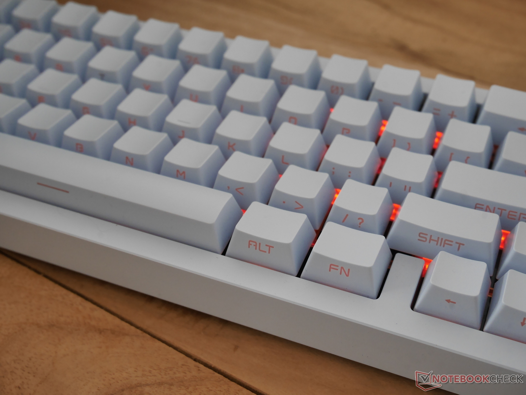 Tuş başlıkları ve hafif anahtarlardan kaynaklanan şikayetler, Zebra anahtarlar ve Cherry profil tuş başlıkları içeren renk seçeneklerinden birini tercih ederek çözülebilir. Bu kombinasyon yazmak için çok daha rahat.