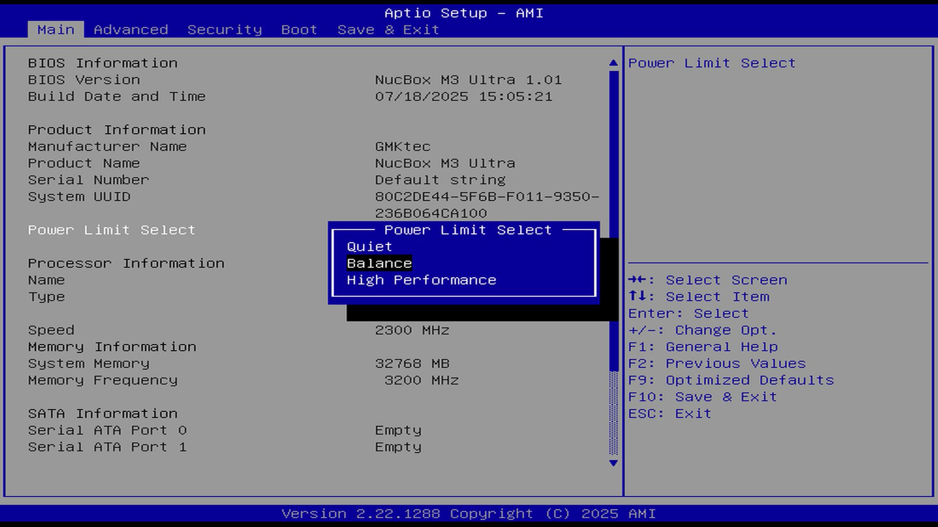 Test çalışmaları 35 watt TDP ile teslimat durumunda gerçekleştirilmiştir. BIOS'ta bir performans modu (45 watt) ve bir sessiz mod (28 watt) da mevcuttur.
