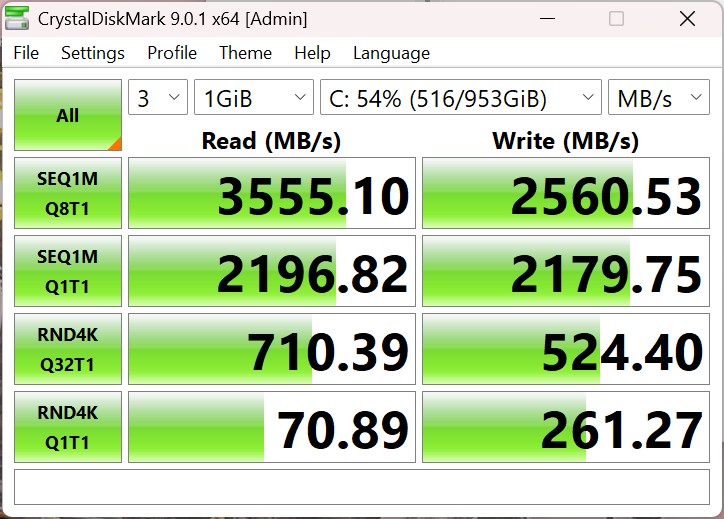 Bu Intel Core i7-12700H 14 çekirdeği (6P + 8E) ile sağlam bir performans sunar. Güç tüketimi açısından SoC, Intel'in spesifikasyonlarına göre garanti edilen minimum performans olan 35 watt ile çalışıyor. Bu, işlemcinin çok iş parçacıklı görevlerde rakiplerine ayak uyduramayacağı anlamına geliyor.