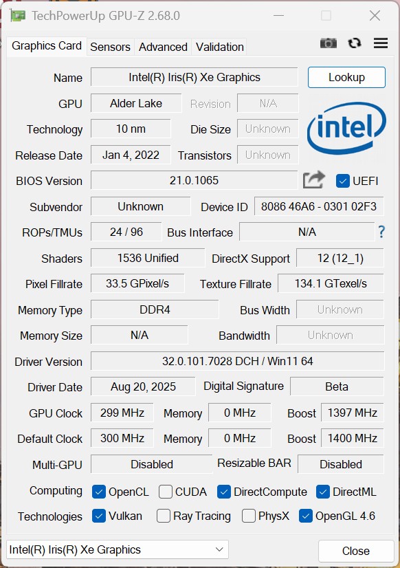 Bununla birlikte, soğutma söz konusu olduğunda sistem hafif zayıflıklar gösteriyor: mini PC yük altında duyulabilir hale geliyor ve fan kontrolü hala olgunlaşmamış görünüyor. Daha ince ayarlanmış bir fan eğrisi arzu edilir. Özel bir GPU eksik, ancak entegre Intel Iris Xe Graphics multimedya, akış ve ara sıra gündelik oyunlar için yeterli performans sunuyor. Bu arada, bağlantı özelliği USB4 veya OCuLink olmadan yalnızca basit bir standart sunuyor. Muhalifler gibi Minisforum UM890 Pro ya da Geekom A8 burada bir avantajımız var.