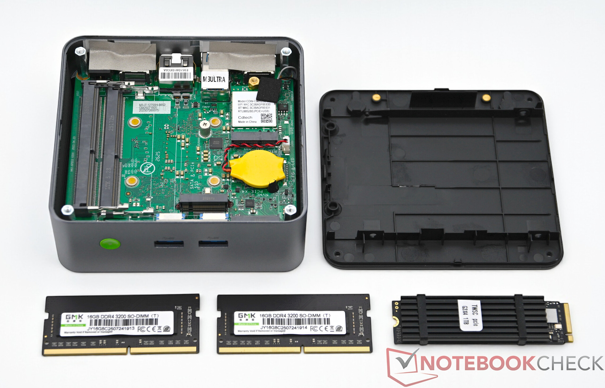 GMKtec NucBox M3 Ultra'yı açmak için önce muhafazanın alt kısmını çıkarın. İçeride, gerekirse bazı bileşenler değiştirilebilir veya yükseltilebilir.