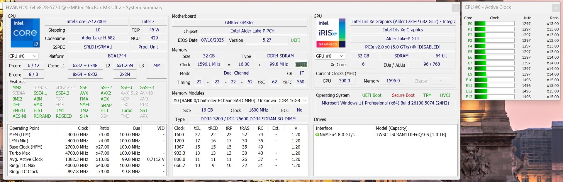 GMK NucBox M3 Ultra Intel Core i7-12700H ⎘ Intel Iris Xe Graphics G7 96EUs ⎘ 32 GB Bellek, 1024 GB SSD | Amazon: $609.99 Liste fiyatı: 429€ | 437 g | 106 x 114 x 42.5 mm | |