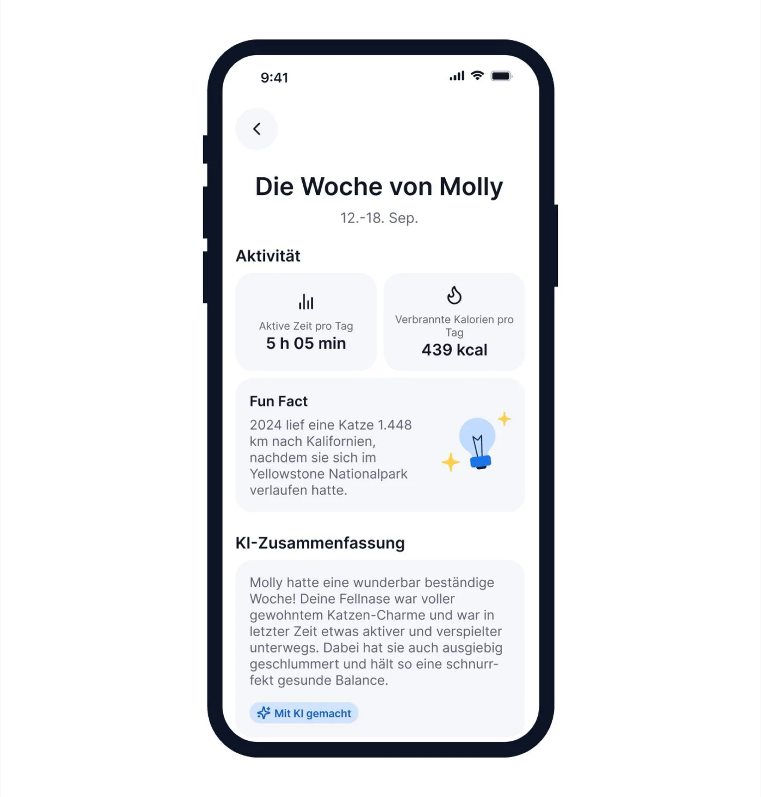 Kullanıcılar, Android akıllı telefonlar ve Apple iPhone(Amazon'da 775 $) için ilgili uygulamada sanal çitler kurabilir ve evcil hayvan belirtilen alanı terk ettiğinde bildirim alabilir. Katedilen mesafe, bir kedinin bölgesinin gerçekte ne kadar geniş olduğunu görmek için bir harita üzerinde görüntülenebilir. Akıllı telefondan etkinleştirilebilen LED'ler ve hoparlörler, yakındaki bir evcil hayvanın izini sürmeyi kolaylaştırıyor