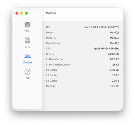 Yeni Apple M5'in (4 süper çekirdek, 6 verimlilik çekirdeği) CPU performansı çok etkileyici ve oldukça büyük bir farkla satın alabileceğiniz en hızlı tek çekirdekli işlemci. Sistem güç limitini oldukça hızlı bir şekilde düşürmek zorunda kalsa da çok çekirdekli performans da çok iyi. Aktif soğutmalı MacBook Pro 14 M5 ile karşılaştırıldığında, birkaç dakika süren ve güç tüketiminin ~13W'a düştüğü Cinebench 2024 Multi testi sırasında açık hala sadece %18'dir. CB24 Multi stres testinden sonra (30 dakika), sonuç hala 9 Watt'ta 820 puan. CPU performansı pil gücünde azalmıyor.