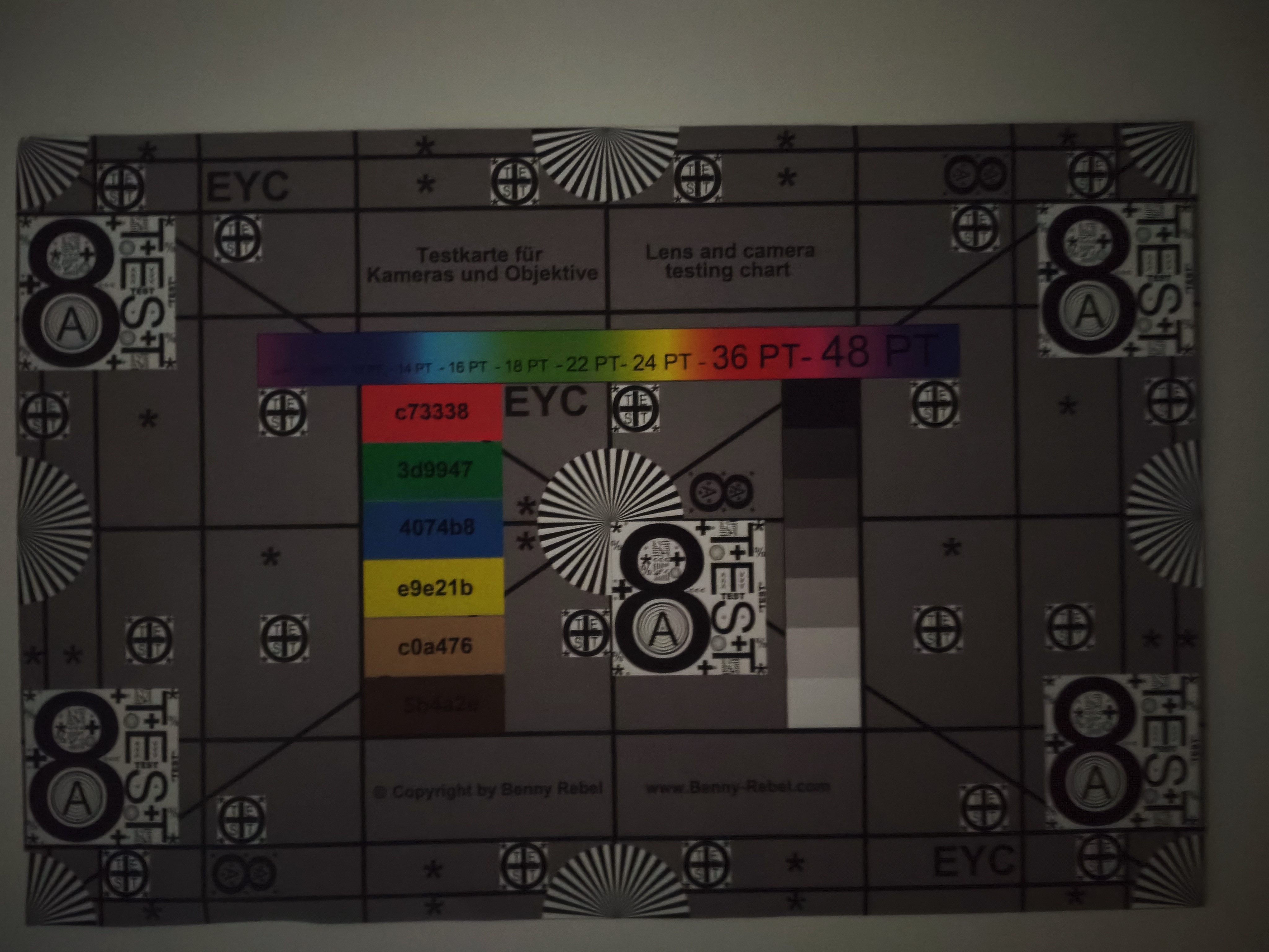 | Colorchecker dE 2000 max. * | 1.8 | 2.2 -22% | 1.85 -3% | 4.4 -144% | 3 -67% |