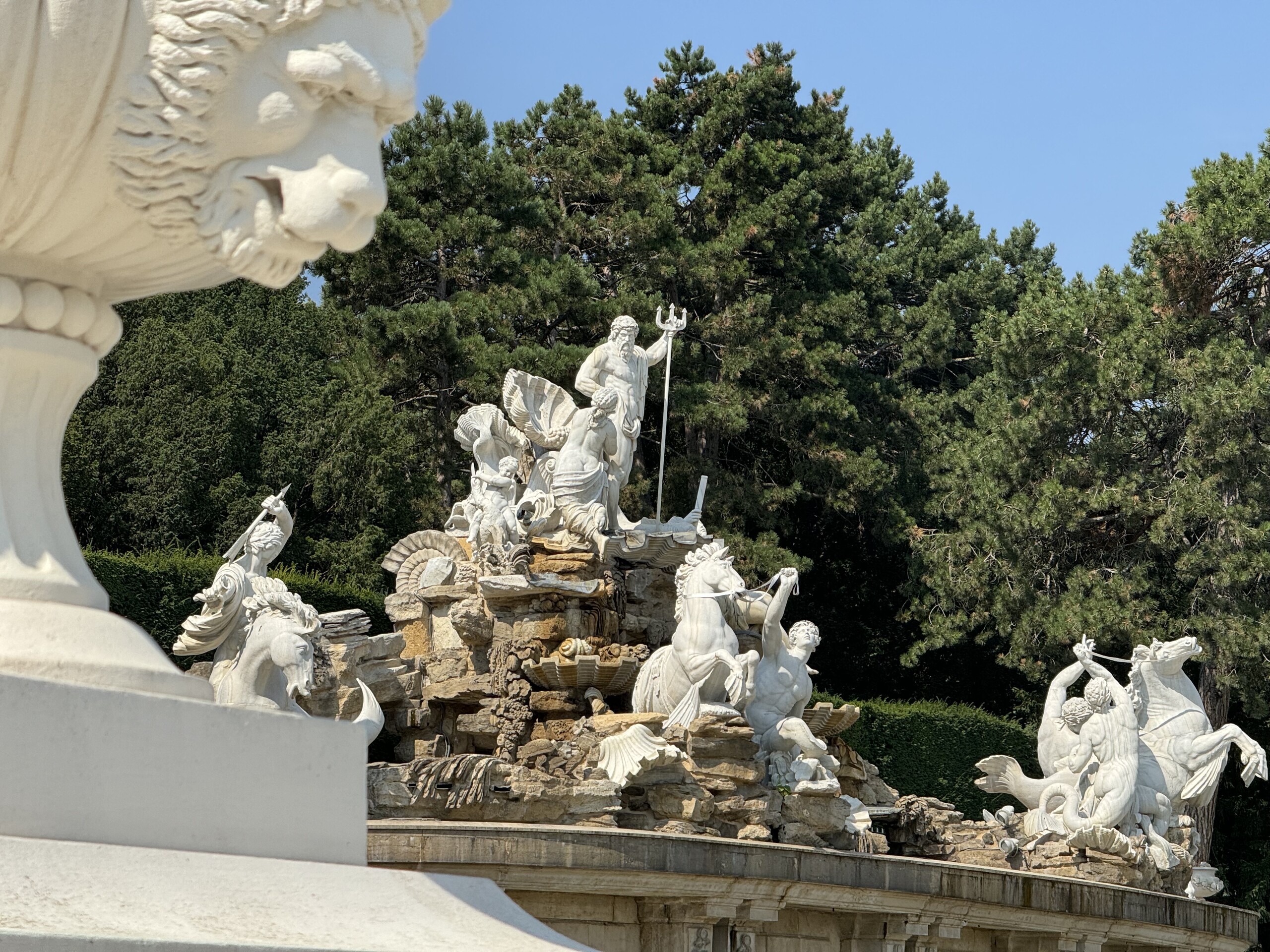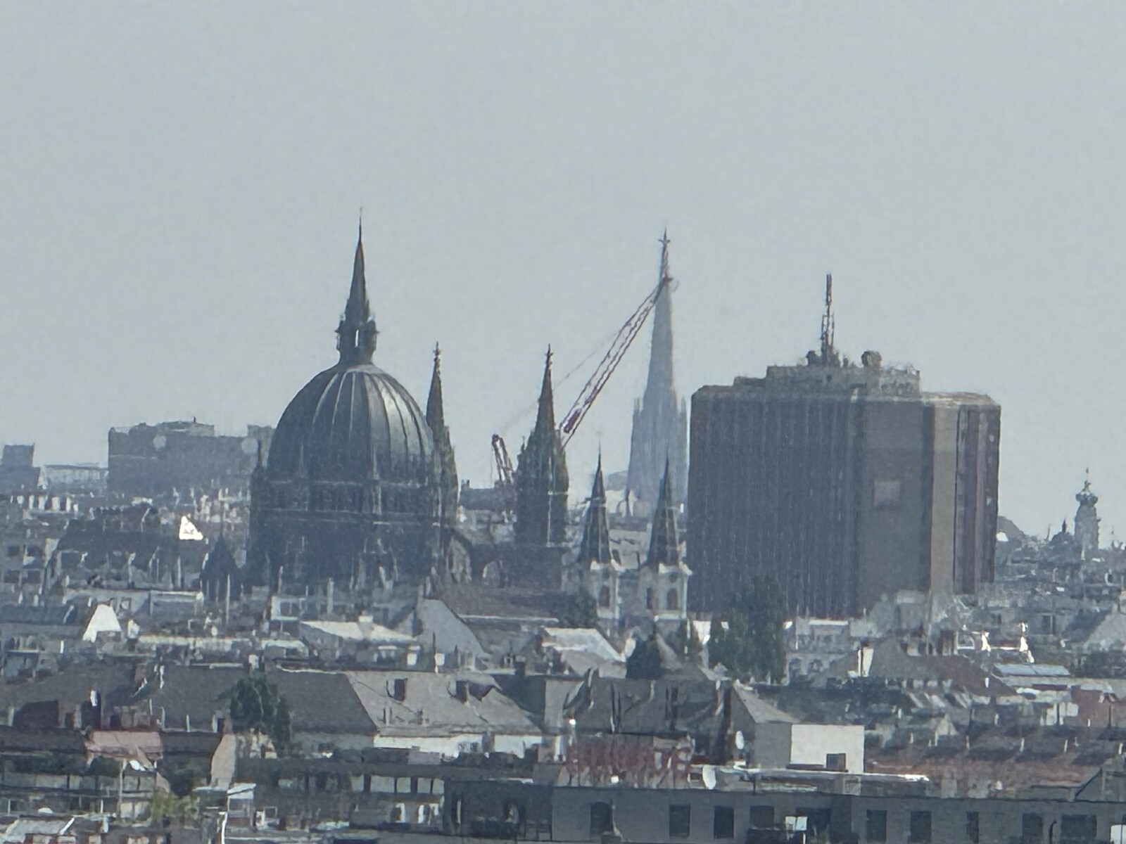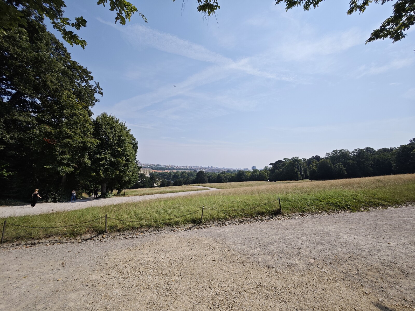 Neptün Çeşmesi'ni geçerek, sarayın hemen arkasındaki tepede yer alan ve tepesinde devasa görkemli bir köşk bulunan ünlü seyir noktası Gloriette'ye doğru tırmanmaya başladık. Tepeye vardığımızda, bakışlarımızın Viyana şehrinin büyük bir bölümünde dolaşmasına izin verebildik. Orada, Aziz Mary Kilisesi veya Aziz Stephen Katedrali gibi şehir merkezindeki önemli binaları görebilirsiniz. Bu noktada, farklı lensleri ve zoom seviyelerini test etmek için her iki akıllı telefonu da zoom turu için hazırlıyorduk.