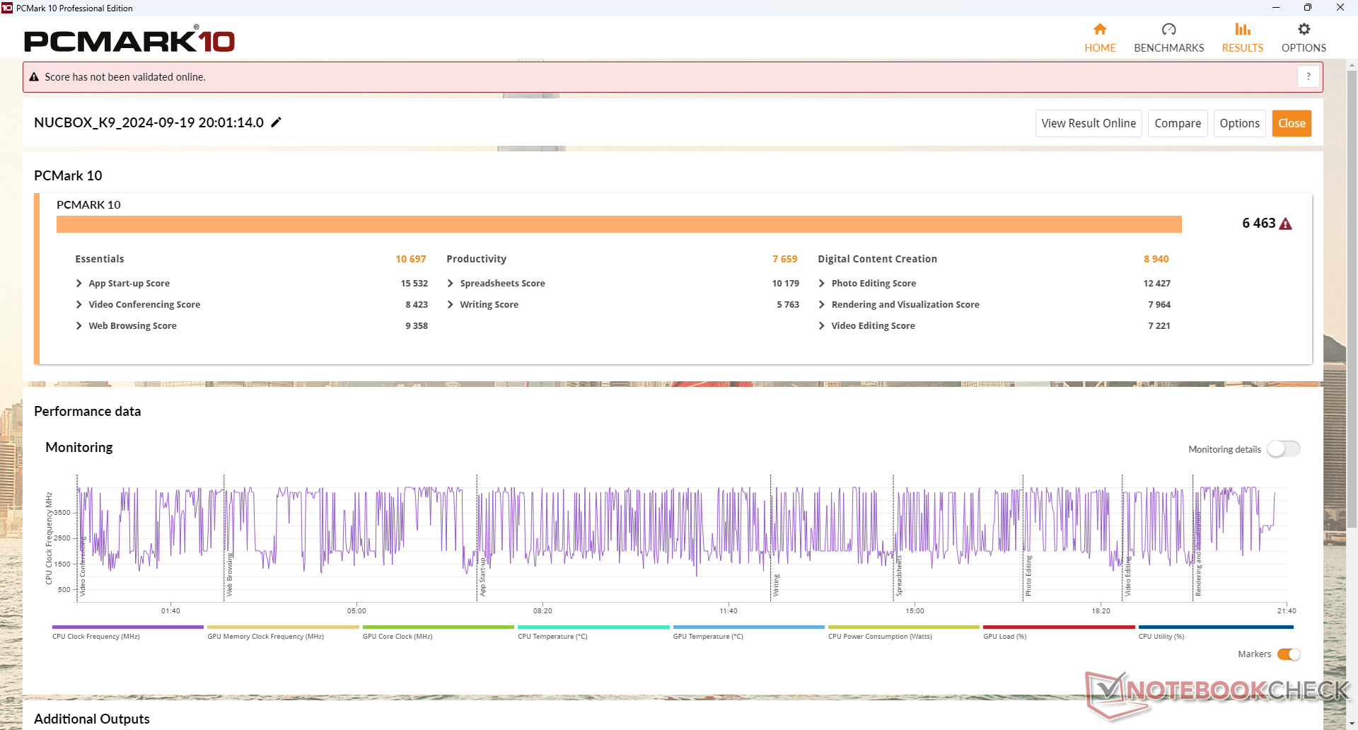 Masaüstünde rölantide çalışırken tüketim, NucBox M6 gibi diğer modellerde 6 W ila 8 W'a kıyasla Güç Tasarrufu modundayken bile yaklaşık 11 W ile beklenenden daha yüksektir Beelink SER8. Bununla birlikte, 3DMark 06 veya Cyberpunk 2077 gibi daha zorlu yükleri çalıştırırken, tüketim daha hızlı NucBox K6'dan belirgin şekilde daha düşük olacaktır.