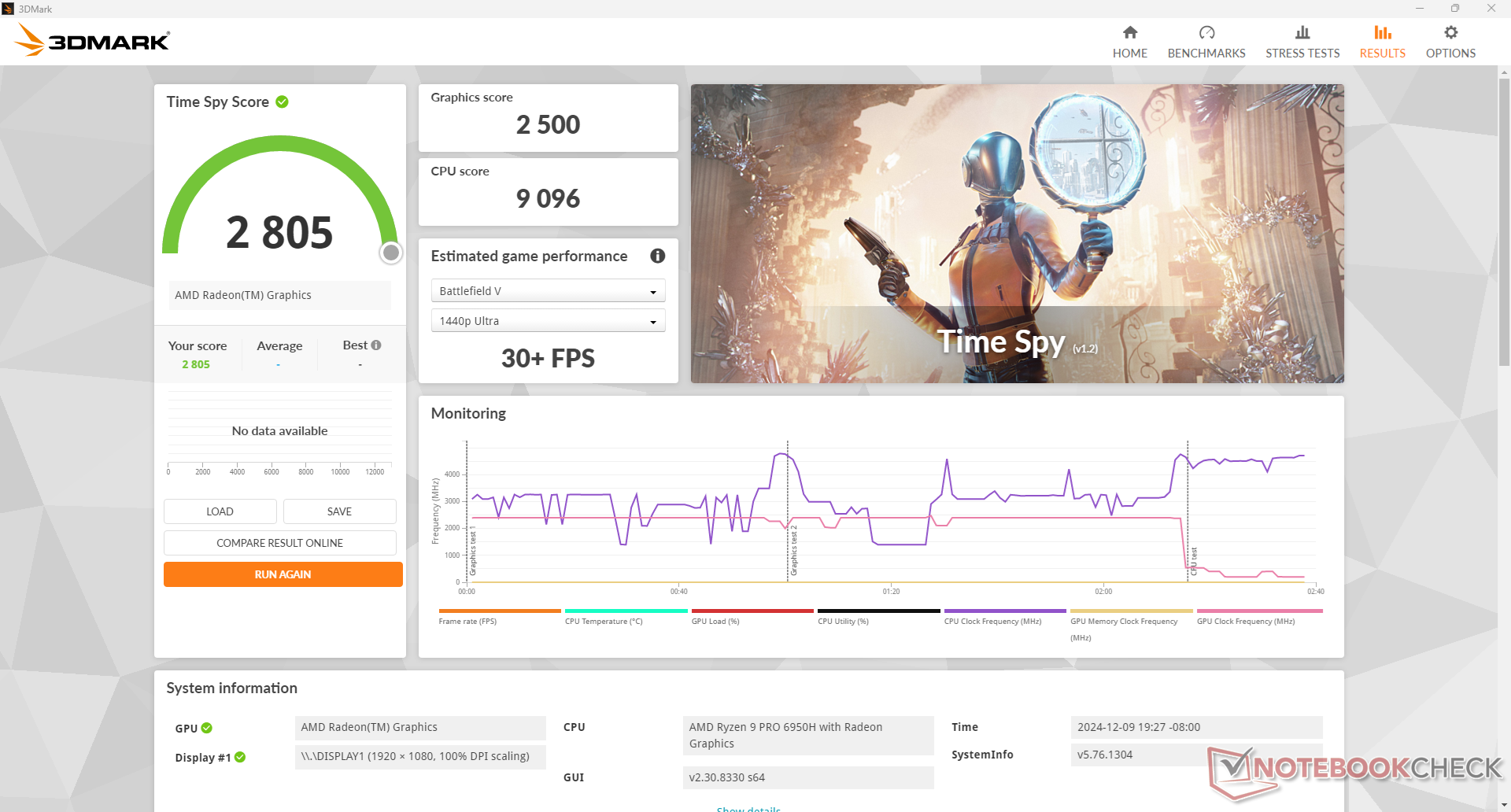| 3DMark Time Spy Score | 2805 puan | |