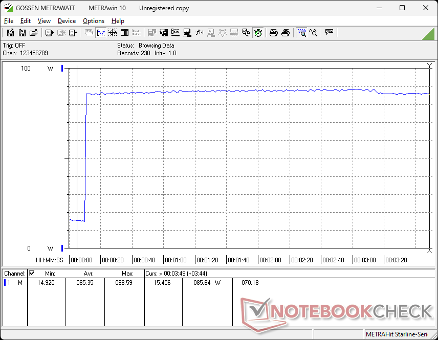 CPU yüzde 100 yükteyken orta büyüklükteki (13,2 x 5,8 x 3,2 cm) 120 W AC adaptörden maksimum 90 W çekildiğini kaydedebiliyoruz.