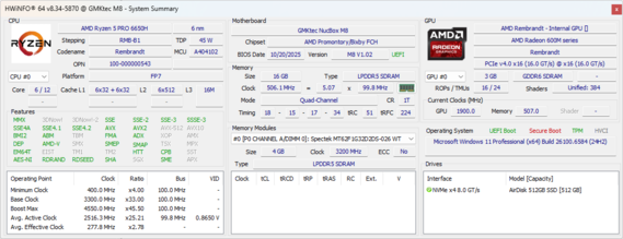 | GMK NucBox M8 AMD Ryzen 5 PRO 6650H ⎘ AMD Radeon 660M ⎘ 16 GB Bellek, 512 GB SSD | Amazon: | 494 g | 63 mm | x | |