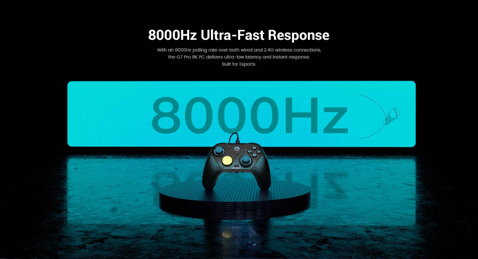 Özel bir tasarıma sahip olmasının yanı sıra, G7 Pro 8K PC Aimlabs Edition kablosuz kumanda, daha yumuşak, daha doğrusal kontrole sahip ve ultra düşük güç tüketimine sahip ikinci nesil Mag-Res TMR çubukları kullanıyor. Yeni kontrolör ayrıca kablolu ve 2.4GHz kablosuz modda kullanıldığında, standart sürümün 1000Hz yoklama hızına kıyasla 8.000Hz yoklama hızına sahiptir.