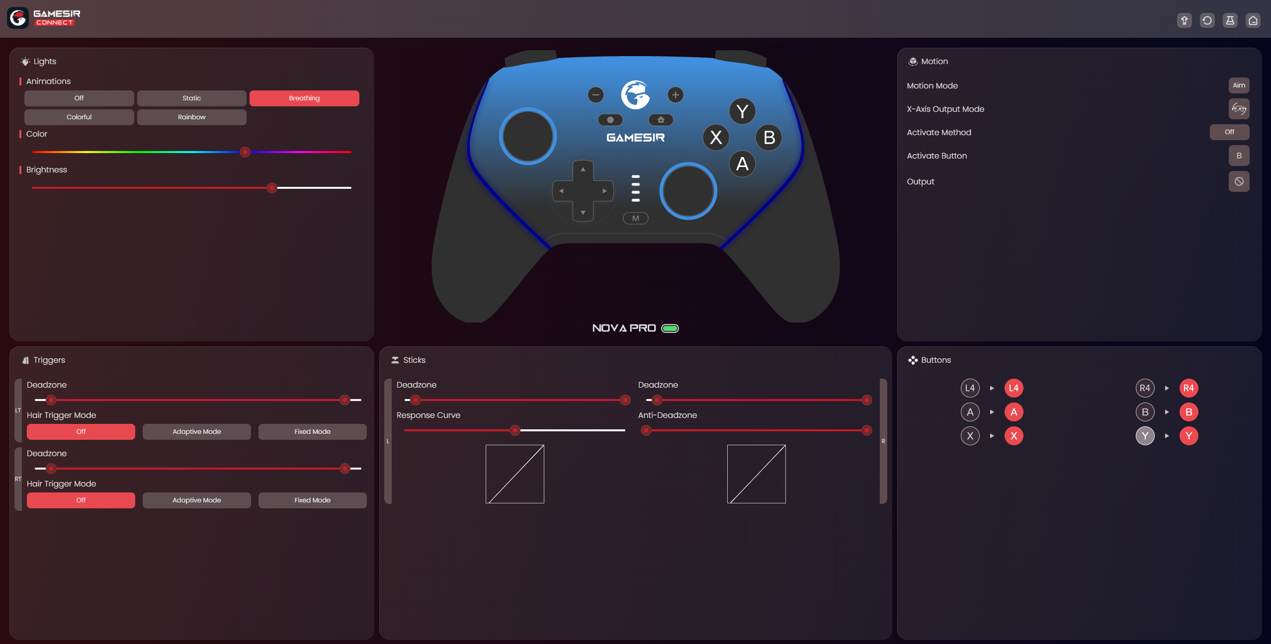 PC'de, yukarıdakilerin hepsini GameSir Connect uygulaması aracılığıyla yapabilirsiniz. Özelleştirme seçenekleri çok sayıda ve temelden daha fazlasını kapsıyor. Tüm bunlar ve daha fazlası Super Nova üzerindeki düğmelerin bir kombinasyonu ile yapılabilir. D-pad ve başparmak çubuğu arasında bulunan "M" tuşu, ölü bölgeler, RGB aydınlatma, jiroskop, dokunsal geri bildirim, saç tetik modu ve diğer her şeyi yapılandırmak için tek durak çözümünüzdür. Yeterince pratik yaparsanız, yardımcı uygulama olmadan da ayarları anında yapabilirsiniz. Faydalı bulduğum bir özellik, "M" artı "+" veya "-" tuşlarıyla anında gürültüyü ayarlayabilmekti