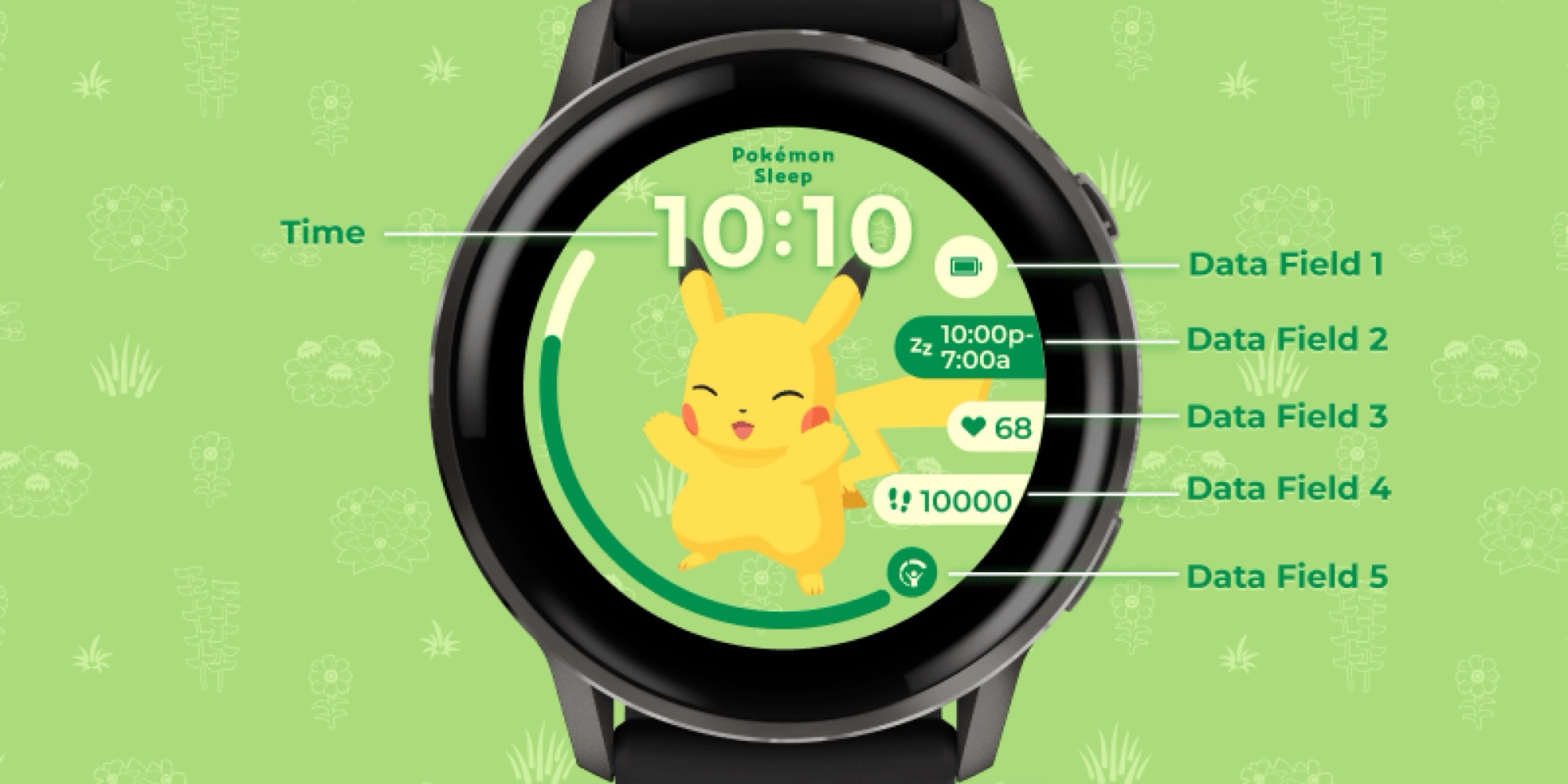 Saat kadranında tarih ve saatin yanı sıra, atılan adımlar, kalp atış hızı veya uyku takibi gibi ayrıntıları doğrudan saat kadranında görüntülemek üzere serbestçe seçilebilen üç yuvarlak komplikasyon için de alan bulunuyor. Pokémon Sleep adı verilen ikinci saat kadranı: I Choose You, kullanıcıların toplam 48 farklı Pokémon arasından seçim yapmasına olanak tanıyor. Bu saat kadranı da Pokémon'un pozunu vücut piline uyarlıyor, ancak saat kadranı beş komplikasyon için alan sunuyor.