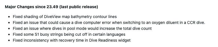 Şimdi, sistem yazılımı 25.14 ile Garmin, Descent Mk3 ve Descent Mk3i(Amazon'da 1.399,99 $) kullanıcılarının yaşadığı daha fazla hatanın üstesinden geliyor. İlk olarak şirket, DiveView haritasındaki batimetri kontur çizgilerinin gölgelendirilmesiyle ilgili bir sorunu çözdü. Kullanıcılar bir CCR dalışında oksijen seyrelticisine geçtiğinde meydana gelen bir dalış bilgisayarı hatası için bir düzeltme var.