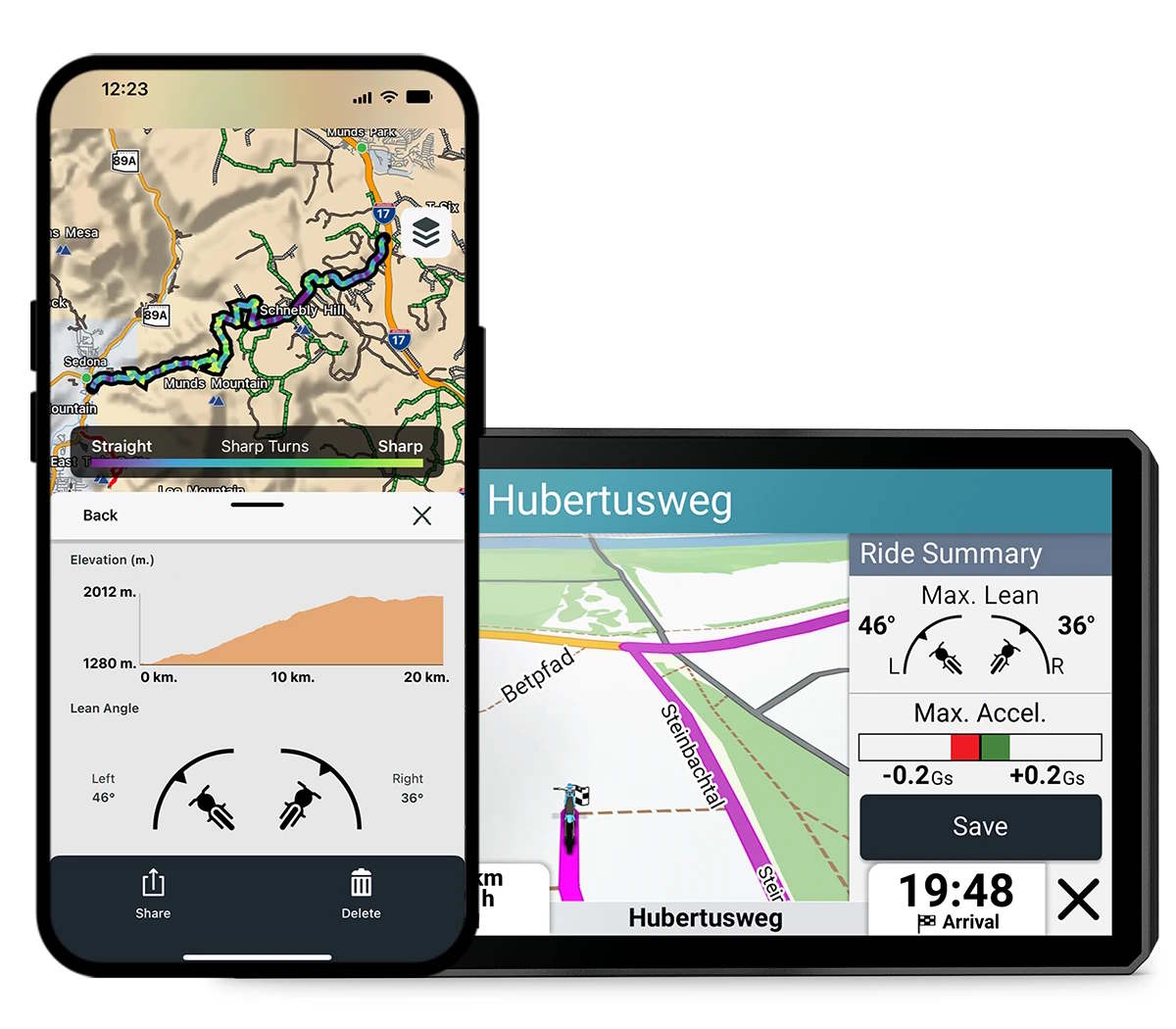 Örneğin, cihaz, sürücülerin bir dönüşte motosikleti ne kadar eğdiklerini gösteren eğim açısını gösterebilir. Grup sürüşü özellikleri de mevcuttur ve kullanıcıların navigasyon cihazındaki diğer sürücülerin konumunu görüntülemesine olanak tanır. Ancak bunun için dolaylı bir hücresel bağlantı veya hücresel bağlantı olmadan takip için uyumlu aksesuarlar gerekir. Zumo XT3, Garmin Performans Paketi etkinleştirildiğinde yarışçıları da hedefliyor. Bu durumda, çeşitli mesafeler için süreleri, 100 kph'ye kadar hızlanmayı ve tur sürelerini görüntüleyebilir.