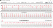 Stres testimiz (Prime95 ve FurMark'ı uzun süre çalıştırmak), sistemin tam yükteki kararlılığını belirlemek için tasarlanmış aşırı bir senaryoyu temsil etmektedir. Yüksek saat hızlarında başladıktan sonra, CPU ve GPU test ilerledikçe yavaşlamaya başladı. Yaklaşık 30 dakika içinde, CPU yaklaşık olarak temel saatinde çalışırken, GPU yaklaşık 2 GHz'e ulaşıyordu.