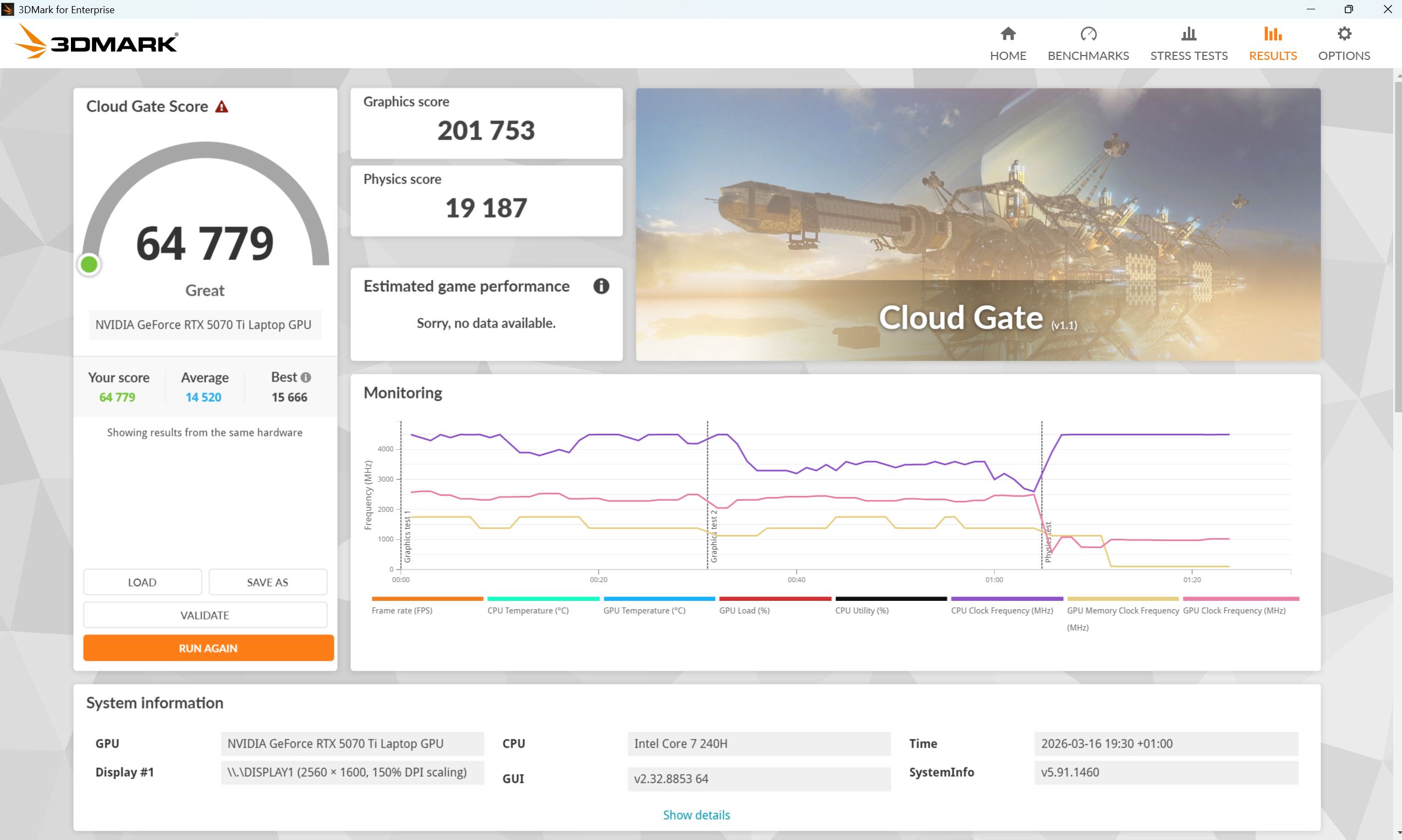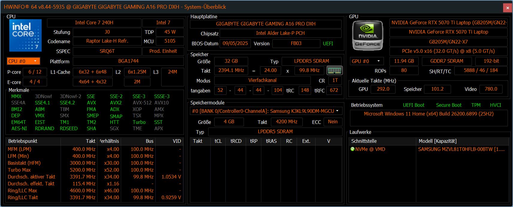 Gigabyte Gaming A16 Pro GA6DH (Core 7 240H, RTX 5070 Ti)