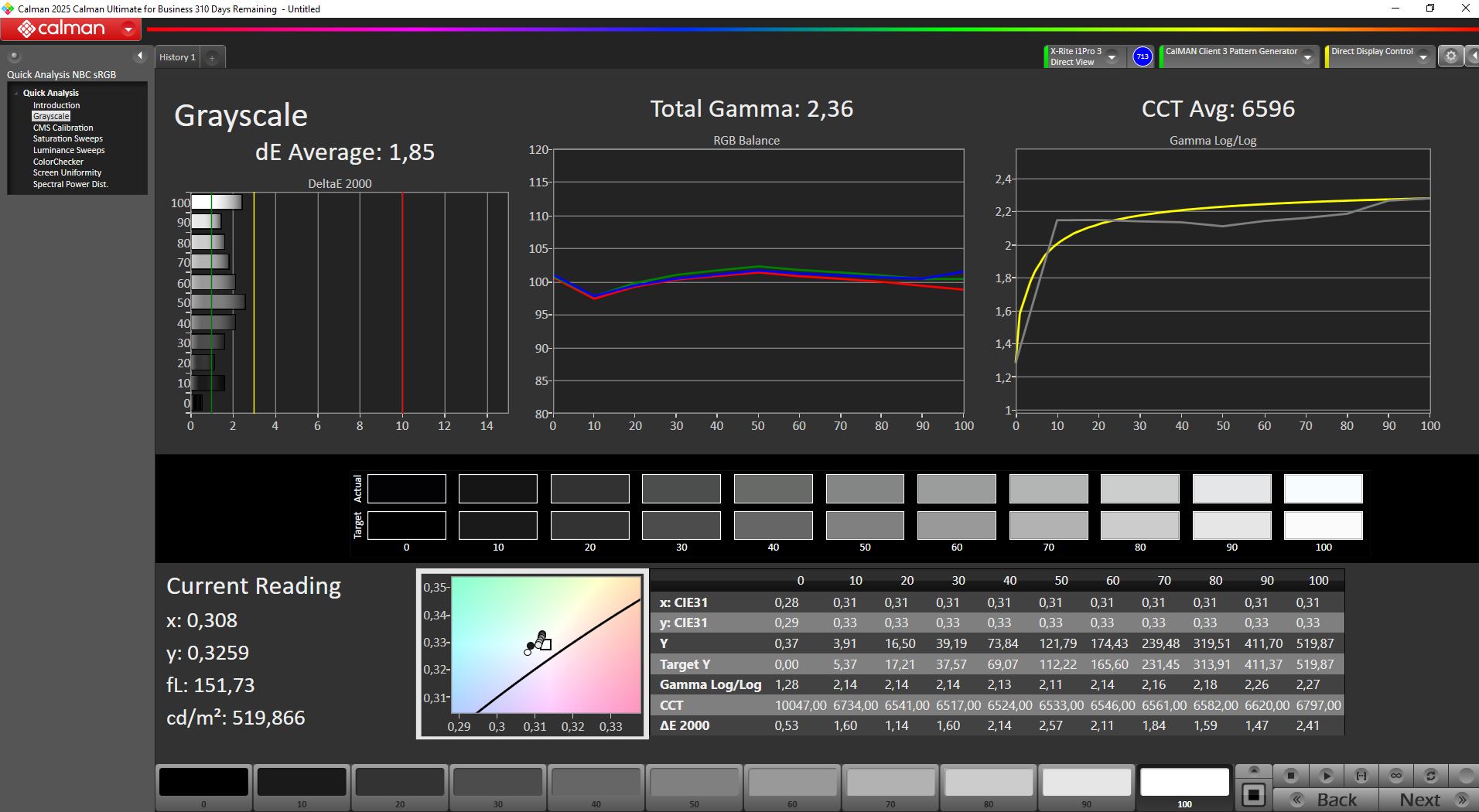 ΔE Greyscale Calman: 1.85 | ∀{0.09-98 Ø5}
