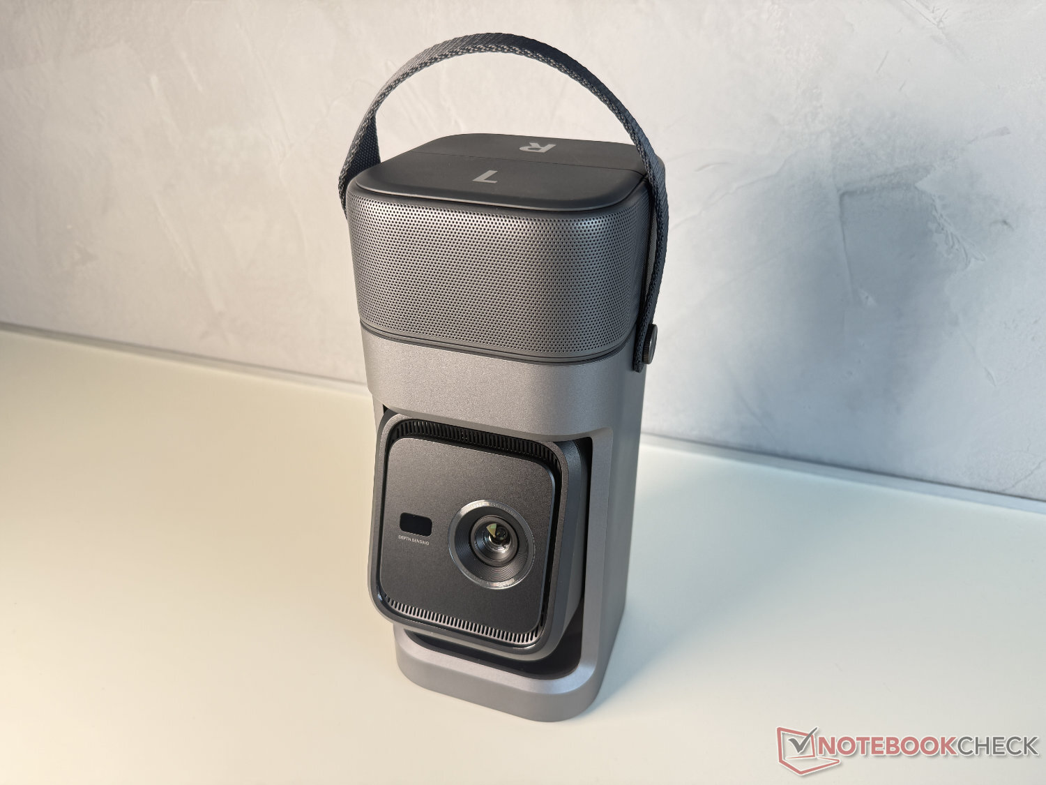 Projeksiyon ünitesi taşıma modunda döndürülür ve böylece korunur. Kullanmadan önce, 130 derecelik bir gimbal görevi de gören ve esnek hizalama sağlayan cihazın dışına döndürülür. Görüntü, üreticiye göre 650 ANSI lümen parlaklığında Full HD görüntü (1.920 x 1.080 piksel) sağlayan LED ışık kaynağına sahip küçük bir DLP sensör aracılığıyla yeniden üretilir.
